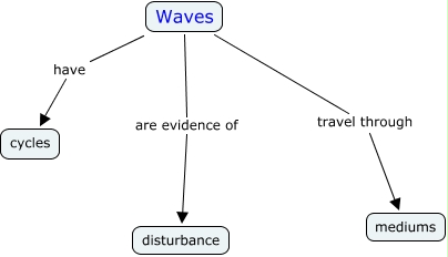 This Concept Map, created with IHMC CmapTools, has information related to: Karen waves, Waves are evidence of disturbance, Waves have cycles, Waves travel through mediums