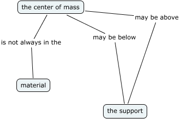 This Concept Map, created with IHMC CmapTools, has information related to: Trish - center of mass, the center of mass may be above the support, the center of mass may be below the support, the center of mass is not always in the material