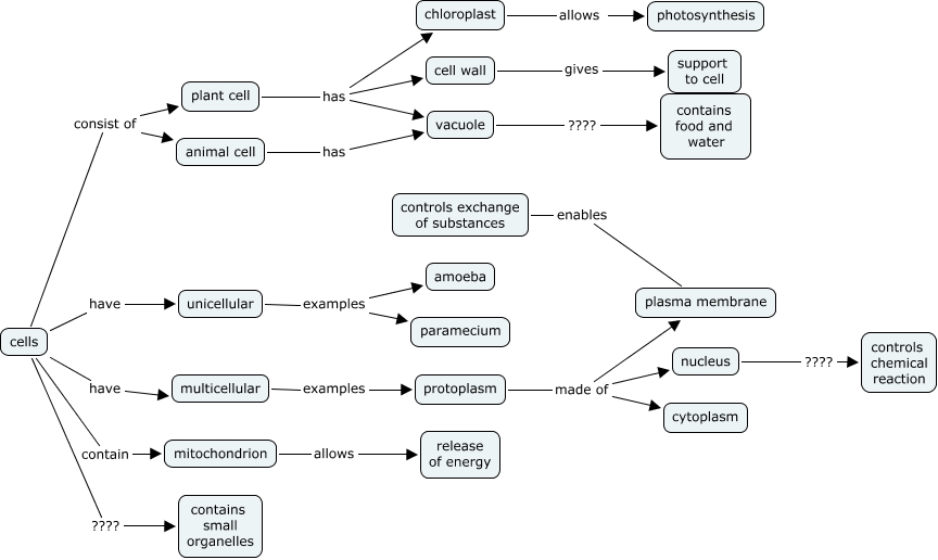 This Concept Map, created with IHMC CmapTools, has information related to: reubent, protoplasm made of cytoplasm, animal cell has vacuole, vacuole ???? contains food and water, mitochondrion allows release of energy, controls exchange of substances enables plasma membrane, cell wall gives support to cell, chloroplast allows photosynthesis, cells have multicellular, plant cell has vacuole, cells consist of animal cell, plant cell has chloroplast, protoplasm made of nucleus, cells ???? contains small organelles, cells contain mitochondrion, plant cell has cell wall, cells consist of plant cell, protoplasm made of plasma membrane, unicellular examples amoeba, unicellular examples paramecium, cells have unicellular