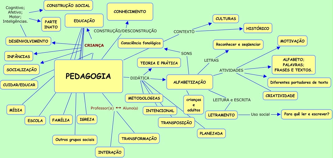This Concept Map, created with IHMC CmapTools, has information related to: Pedagogia, EDUCAÇÃO i IGREJA, ALFABETIZAÇÃO ???? crianças e adultos, PEDAGOGIA Professor(a) ↔ Aluno(a) TRANSFORMAÇÃO, ALFABETIZAÇÃO ATIVIDADES Diferentes portadores de texto, ALFABETIZAÇÃO ATIVIDADES MOTIVAÇÃO, DESENVOLVIMENTO Cognitivo; Afetivo; Motor; Inteligências. CONSTRUÇÃO SOCIAL, ALFABETIZAÇÃO ATIVIDADES ALFABETO; PALAVRAS; FRASES E TEXTOS., LETRAMENTO Uso social Para quê ler e escrever?, PEDAGOGIA DIDÁTICA TEORIA E PRÁTICA, ALFABETIZAÇÃO SONS Consciência fonológica, PEDAGOGIA DIDÁTICA ALFABETIZAÇÃO, EDUCAÇÃO ???? ESCOLA, EDUCAÇÃO ???? Outros grupos sociais, PEDAGOGIA DIDÁTICA PLANEJADA, ALFABETIZAÇÃO ATIVIDADES CRIATIVIDADE, PEDAGOGIA CONTEXTO CULTURAS, PEDAGOGIA Professor(a) ↔ Aluno(a) INTERAÇÃO, ALFABETIZAÇÃO LEITURA e ESCRITA LETRAMENTO, EDUCAÇÃO ???? MÍDIA, PEDAGOGIA CRIANÇA DESENVOLVIMENTO