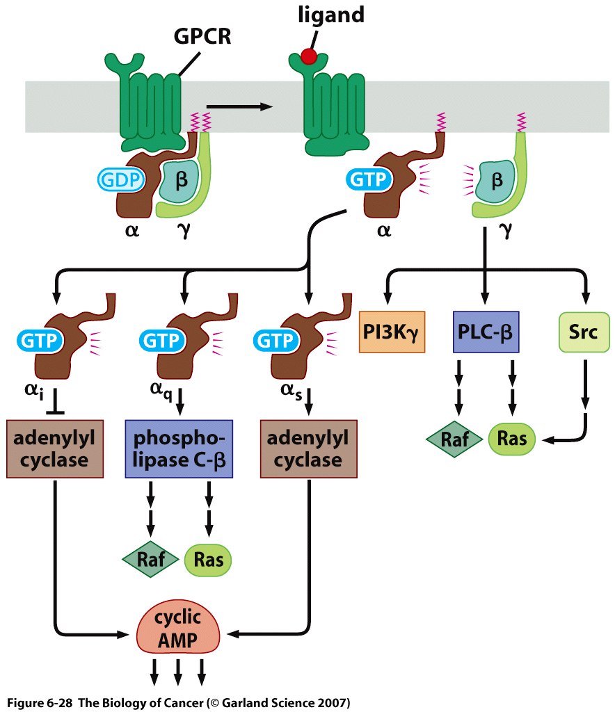 This Concept Map, created with IHMC CmapTools, has information related to: 6-11 Concepts, G-protein-coupled receptors drive normal proliferation, G-protein-coupled receptors drive neoplastic proliferation
