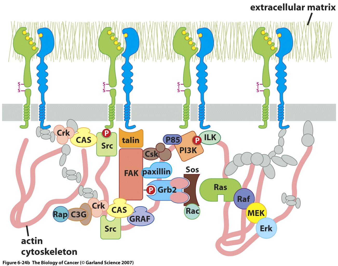 This Concept Map has information related to: Class Notes 9.17&9.20 Chapter6signaling circuitry, phosphorylation of tyrosine kinase receptors including attraction of SH2 contianing molecules, intrinsic activity includes receptor dimerization, covalent modification e.g. phophorylation of MEK by Raf, several cellular functions e.g. Ral and control of the cytoskekleton, 2 roles inthe nucleus, Translocation of cytoplasmic moleculed to the nucleus e.g. Notch, different effector loops dictate Ras preference, PI3K Kinase pathway control cell proliferation, Cell signals can be transduced by intrinsic activity, 2 roles in the cytoskeleton