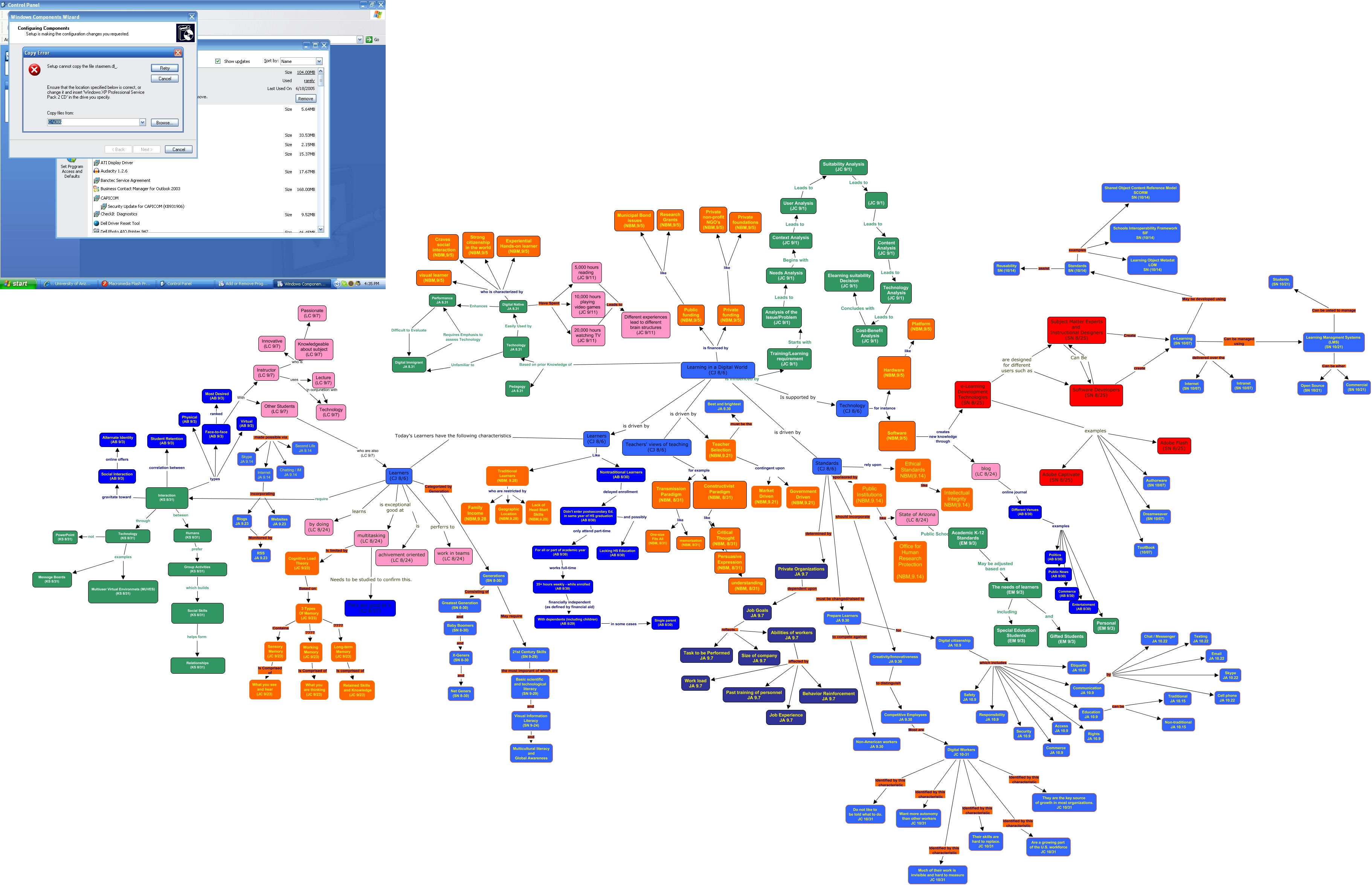 This Concept Map, created with IHMC CmapTools, has information related to: Group 2 - F07 - Learning in a Digital World, Face-to-face (AB 9/3) ranked Most Desired (AB 9/3), Standards SN (10/14) examples Shared Object Content Reference Model SCORM SN (10/14), Visual Information Literacy (SN 9-24) and Multicultural literacy and Global Awareness, (JC 9/1) Leads to Content Analysis (JC 9/1), Traditional Learners (NBM, 9.28) who are restricted by Geographic Location (NBM,9.28), Digital Workers JC 10-31 Identified by this characteristic Do not like to be told what to do. JC 10/31, Standards (CJ 8/6) must be changed/raised to Prepare Learners JA 9.30, Standards SN (10/14) examples Schools Interoperability Framework SIF SN (10/14), Learning in a Digital World (CJ 8/6) Based on prior Knowledge of Technology JA 8.31, Learners (CJ 8/6) learns by doing (LC 8/24), User Analysis (JC 9/1) Leads to Suitability Analysis (JC 9/1), Generations (SN 8-30) May require 21st Century Skills (SN 9-29), The needs of learners (EM 9/3) and Gifted Students (EM 9/3), Teachers' views of teaching (CJ 8/6) for example Constructivist Paradigm (NBM, 8/31), Education JA 10.9 can be Non-traditional JA 10.15, Transmission Paradigm (NBM, 8/31) like One-size Fits All (NBM, 8/31), Technology Analysis (JC 9/1) Leads to Cost-Benefit Analysis (JC 9/1), Communication JA 10.9 by Chat / Messenger JA 10.22, Digital Workers JC 10-31 Identified by this characteristic Much of their work is invisible and hard to measure JC 10/31, Virtual (AB 9/3) made possible via Second Life JA 9.14