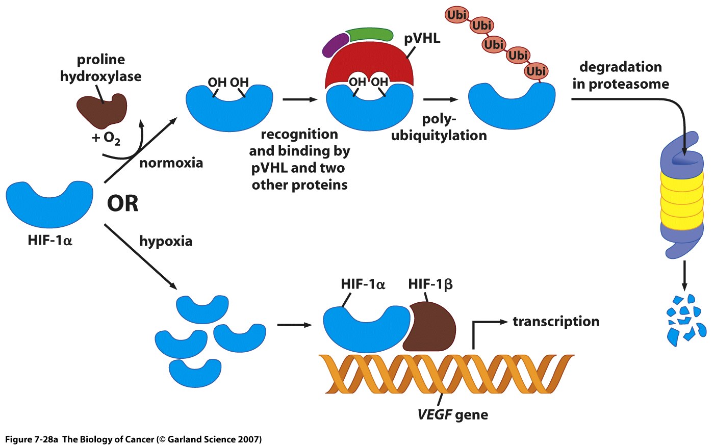 This Concept Map, created with IHMC CmapTools, has information related to: section 7-12, HIF- 1 activates expression of VEGF, HIF- 1 is degraded in normoxia, HIF- 1 causes angiogenesis, HIF- 1 is not degraded in hypoxia, tumors as discussed in Section 13.6, erythropoiesis important for tumors, HIF- 1 causes erythropoiesis, Von Hippel- Lindau disease includes hemangioblastomas, pVHL when defective can cause familial polycythemia, VEGF is discussed in Chapter 13, pVHL modulating the hypoxic response, angiogenesis important for tumors, Von Hippel- Lindau disease is characterised by pVHL, pVHL regulates HIF- 1