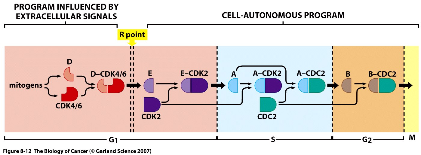 This Concept Map, created with IHMC CmapTools, has information related to: group cmap, E-CDK2 prepares proteins for the centrosome, Smad3-Smad4 comples activates transcription of p15INK45, p15 ink4B inhibits D-CDK4/6, E-CDK2 forms Hyperphosphorylated pRB, hypophosphorylated depending on the phase of the cell cycle, TGF-beta antagonizes tumor progression, pRb gets hyperphosphorylated, cell cycle clock requires regulation of the cell cycle clock, Myc prevents transcription of Miz-1, restriction point aka R point, T oncoprotein have cellular targets, cellular targets are members of pocket proteins, p21Cip1 deactivates A-CDK2, TGF-beta upregulates the transcription of p21Cip1, cell cycle includes mitosis, cyclin E phosphorylates and deactivates p27Kip1, tumor progression ex CML, E-CDK2 hyperphosphorylates pRB, pRb phosphorylation during cell cycle affects actions of pRb, actions of pRb are mostly regulation of the cell cycle clock