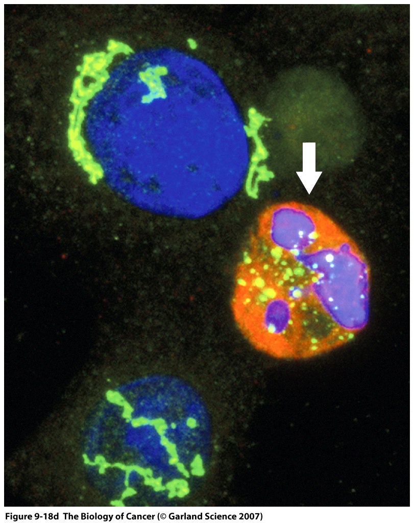 This Concept Map, created with IHMC CmapTools, has information related to: Section 9-10, cancer pathogenesis as discussed in Section 9.13, pyknosis afterwards cleaves chromosomal DNA, anoxia causes p53, p53 to usher in the apoptotic death program, pyknosis are manifestations of the apoptotic death program, apoptotic death program is realted to cancer pathogenesis, apoptotic cell breaks up into apoptotic bodies, apoptotic bodies are ingested by cells, caspase 3 playews prominent role in apoptotic death program, nucleus collapses into pyknosis, apoptotic bodies are manifestations of the apoptotic death program, blebs are like boiling cell surface, apoptotic death program is active in morphogenesis, blebs are manifestations of the apoptotic death program