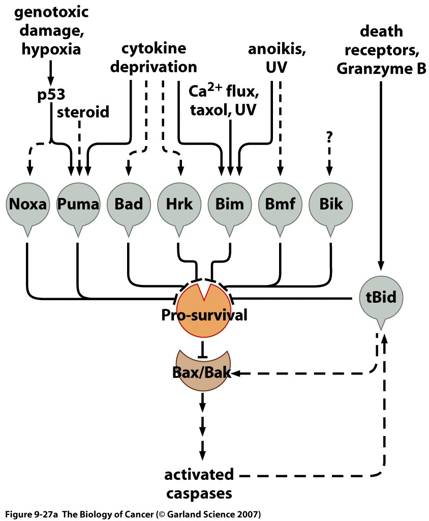 This Concept Map, created with IHMC CmapTools, has information related to: Chapter 9 Merged Map, p53 triggered apoptosis is used only in Nonroutine, emergency situations, Bax gene inactivation as described as Chapter 12, anti-apoptotic stategies e.g. PI3K --> Akt/PKB pathway, p53 is an example of A dominant mutant, cell death may be carried out by necrosis, Cancer cells have loss of Apoptosis, Myc as described in Section 9.8, Inherited p53 inactivation is mimicked in individuals born lacking Chk2 kinase, immune system using natural killer (NK) cells, executioner caspases cleave death substrates, Tumors including Brain tumors, p53 inducers include Agents that disrupt microtubule components of the cytoskeleton, inhibitors of apoptosis (IAPs) which are anti-apoptotic, p53 inactivation allows for the continued existence of an Oncogene bearing cell, p53 inducers include myc oncogene, inhibitors of apoptosis (IAPs) which are anti-apoptotic, ARF binds and inactivated Mdm2, phosphorlated p53 is not bound by Mdm2, p53 originally believed to be an Oncogene, Tumors including Breast cancer