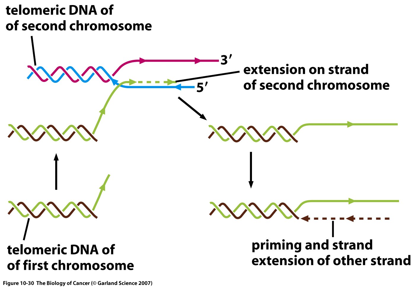 This Concept Map, created with IHMC CmapTools, has information related to: Section 10-8, mismatch repair will be described in Section 12.4, catalytic cleft of hTERT, drug molecules as will be discussed in Chapter 16, yeast cells without mismatch repair, telomeres with ALT mechanism, telomeres without telomerase, ALT mechanism is active in yeast cells, ALT mechanism depends on copy choice, hTERT is blocked by drug molecules, immortalized cells can maintain telomeres