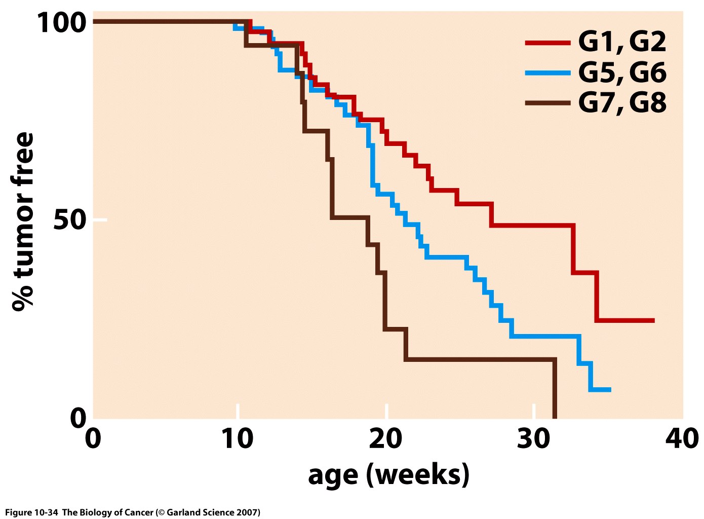 This Concept Map, created with IHMC CmapTools, has information related to: Section 10-10, p53^-/- show increased cancer susceptibility, telomerase-negative show decreased cancer susceptibility, telomerase-negative show increased cancer susceptibility, telomerase-negative show increased cancer susceptibility