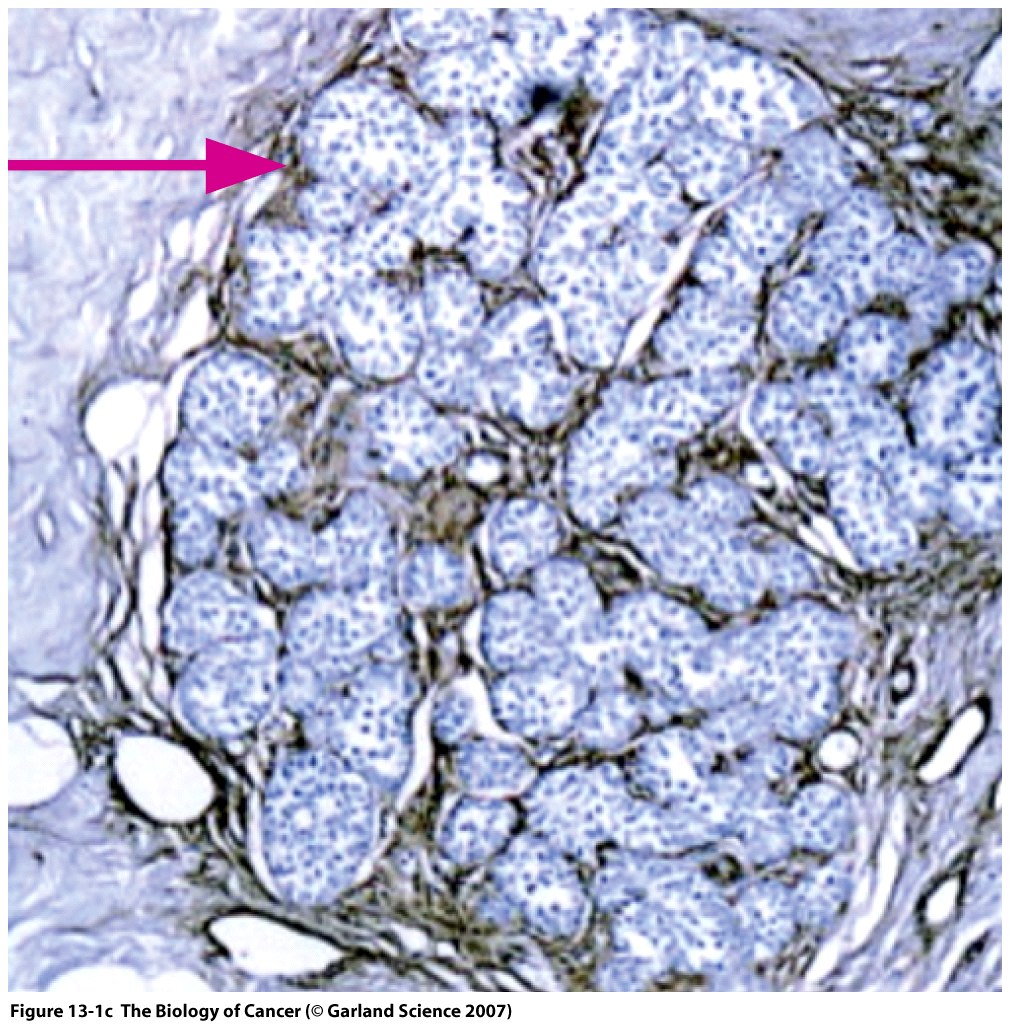 This Concept Map, created with IHMC CmapTools, has information related to: Section 13.1, normal epithelial tissue includes basement membrane, myofibroblasts are stromal components, endothelial cells have hemidesmosomes, endothelial cells have apposed pericytes, pericytes are stromal components, smooth muscle cells aka mural cells, neoplastic epithelial tissue are formed from interdependent cell types, basement membrane contains proteoglycans, mast cells are stromal components, endothelial cells are stromal components, stromal components are found in metastases, growth factor localization is important for proper heterotypic signalling, Section 13.3 will discuss stromal components, growth factor localization is important for proper pericytes, normal epithelial tissue are formed from interdependent cell types, heterotypic signalling depends on ligand receptors, adipocytes are stromal components, microvessels ex lymphatic ducts, stromal components of several commonly occuring carcinomas, neoplastic cells have reduced, but not eliminated, dependence on stromal components
