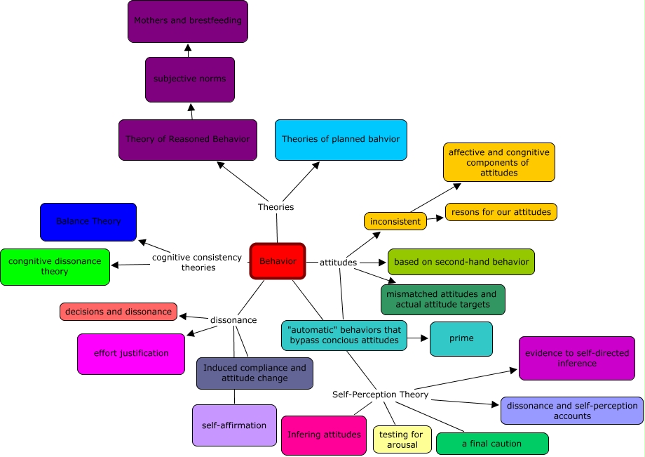 This Concept Map, created with IHMC CmapTools, has information related to: chapter 8, Behavior dissonance self-affirmation, Behavior dissonance effort justification, Behavior dissonance decisions and dissonance, Behavior attitudes inconsistent, Behavior Theories Theories of planned bahvior, Behavior Self-Perception Theory Infering attitudes, Behavior Theories Theory of Reasoned Behavior, Behavior Self-Perception Theory evidence to self-directed inference, Behavior cognitive consistency theories Balance Theory, Behavior cognitive consistency theories congnitive dissonance theory, Behavior dissonance Induced compliance and attitude change, inconsistent ???? resons for our attitudes, Behavior attitudes mismatched attitudes and actual attitude targets, Behavior Self-Perception Theory dissonance and self-perception accounts, inconsistent ???? affective and congnitive components of attitudes, Behavior Self-Perception Theory a final caution, Theory of Reasoned Behavior ???? subjective norms, Behavior Self-Perception Theory testing for arousal, Behavior attitudes based on second-hand behavior, subjective norms ???? Mothers and brestfeeding