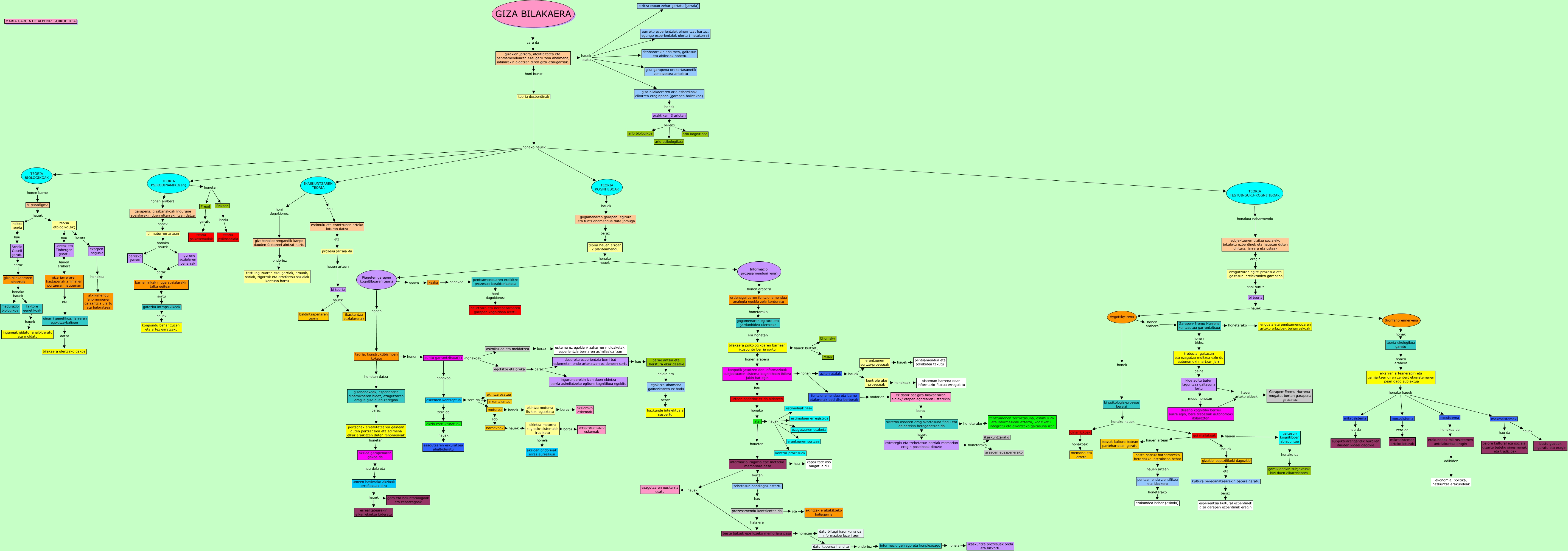 This Concept Map, created with IHMC CmapTools, has information related to: 3_mapa_Garcia de Albeniz_Goikoetxea, gogamenaren garapen, egitura eta funtzionamendua dute jomuga beraz teoria hauen erroan 2 planteamendu, bi teoria hauek Vygotsky-rena, egokitze eta oreka beraz desoreka esperientzia berri bat eskemetan ondo artekatzen ez denean sortu, gaitasun kognitiboen abiapuntua honako da garaikideekin subjektuak bizi duen elkarrekintza, teoria desberdinak honako hauek TEORIA KOGNITIBOAK, teoria hauen erroan 2 planteamendu honako hauek Piageten garapen kognitiboaren teoria, desafio kognitibo berriei aurre egin, bere trebeziak autonomoki ibilarazten hauen arteko aldeak Garapen-Eremu Hurrena mugatu, bertan garapena gauzatuz, TEORIA PSIKODINAMIKO(en) honetan Erikson, beste batzuk epe luzeko memoriara pasa honetan datu kopurua handitu, azken atalak hauek kontrolerako prozesuak, IKASKUNTZAREN TEORIA hau estimulu eta erantzunen arteko loturan datza, makrosistemak hau da balore kultural eta soziala, gizarte bateko sinesmenak eta tradizioak, kontrolerako prozesuak honakoak sisteman barrena doan informazio-fluxua erregulatu, informazio gehiago eta konplexuago honela ikaskuntza prozesuak ondu eta bizkortu, bi muturren artean honako hauek ingurune sozialaren beharrak, giza bilakaeraren oinarriak honako hauek madurazio biologikoa, kanpotik jasotzen den informazioak subjektuaren sistema kognitiboan ibilera jakin bat egin honen azken atalak, bi teoria hauek baldintzapenaren teoria, puntu garrantzitsua(k) honakoak asimilazioa eta moldatzea, Vygotsky-rena honek bi psikologia-prozesu bereizi