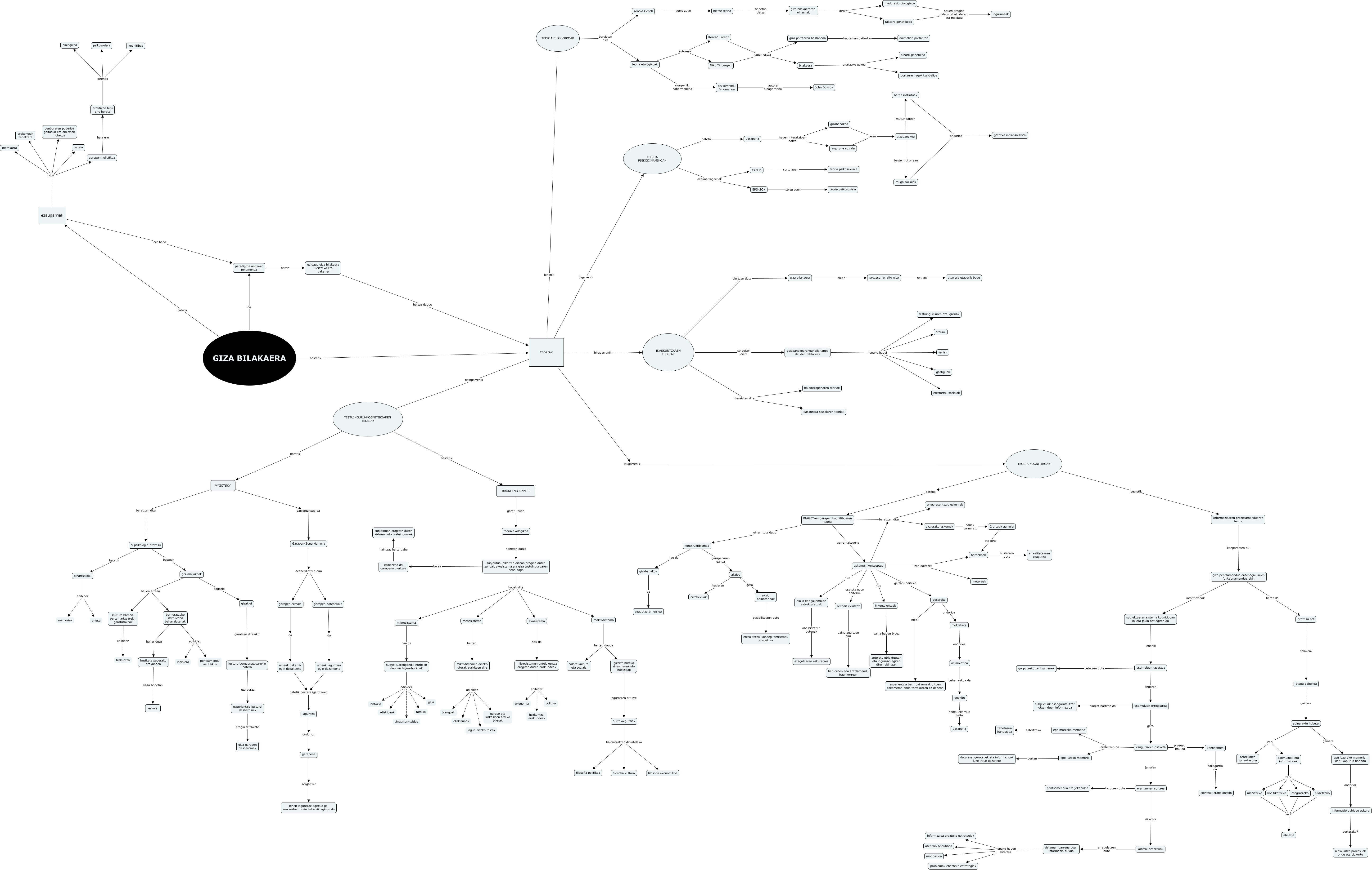 This Concept Map, created with IHMC CmapTools, has information related to: 3_mapa_Ferro_Maiztegi, informazio gehiago eskura zertarako? ikaskuntza prozesuak ondu eta bizkortu, TEORIA KOGNITIBOAK bestetik Informazioaren prozesamenduaren teoria, ezagutzaren osaketa jarraian erantzunen sortzea, praktikan hiru arlo bereizi direnak psikosoziala, aztertzeko zer? abilezia, subjektua, elkarren artean eragina duten zenbait ekosistema ala giza testuinguruaren pean dago hauek dira makrosistema, epe luzerako memorian datu kopurua handitu ondorioz informazio gehiago eskura, TEORIAK bostgarrenik TESTUINGURU-KOGNITIBOAREN TEORIAK, gizabanakoa beste muturrean muga sozialak, laguntza ondorioz garapena, TEORIAK hirugarrenik IKASKUNTZAREN TEORIAK, garapena hauen interakzioan datza ingurune soziala, FREUD sortu zuen teoria psikosexuala, subjektuarengandik hurbilen dauden lagun-hurkoak adibidez familia, garapena zergaitik? lehen laguntzaz egiteko gai zen zerbait orain bakarrik egingo du, estimuluak eta informazioak zer? kodifikatzeko, barne instintuak ondorioz gatazka intrapsikikoak, subjektua, elkarren artean eragina duten zenbait ekosistema ala giza testuinguruaren pean dago hauek dira mesosistema, IKASKUNTZAREN TEORIAK ulertzen dute giza bilakaera, mikrosistemen arteko loturak aurkitzen dira adibidez guraso eta irakasleen arteko bilerak
