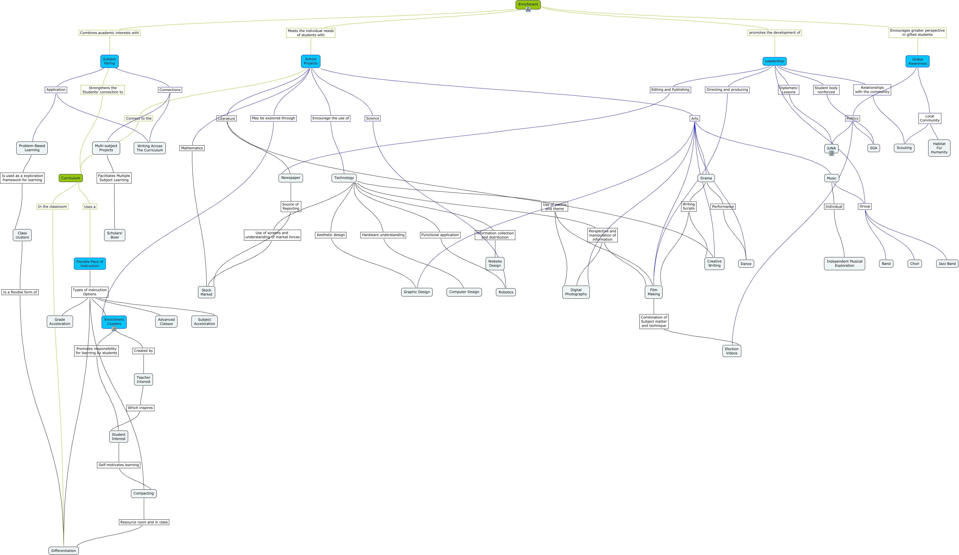 This Concept Map, created with IHMC CmapTools, has information related to: IGP - ISPO - Enrichment, Multi-subject Projects Facilitates Multiple Subject Learning Scholars' Bowl, Flexible Pace of Instruction Types of instruction Options Subject Acceleration, School Projects Arts Creative Writing, Student Interest Self-motivates learning Compacting, Leadership Editing and Publishing Newspaper, Leadership Diplomatic Lessons JUNA, Drama Performance Dance, Technology Use of pathos and theme Digital Photography, Leadership Student body reinforced SGA, Technology Functional application Robotics, Flexible Pace of Instruction Types of instruction Options Enrichment Clusters, School Projects Connect to the Curriculum, Global Awareness Local Community Habitat For Humanity, School Projects Literature Creative Writing, Global Awareness Politics SGA, Subject Paring Application Writing Across The Curriculum, Flexible Pace of Instruction Types of instruction Options Differentiation, Music Group Jazz Band, Enrichment Combines academic interests with Subject Paring, Technology Hardware understanding Computer Design