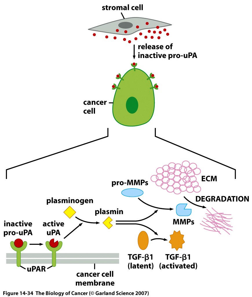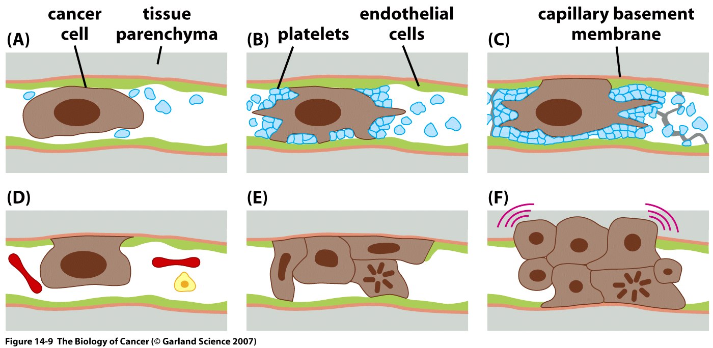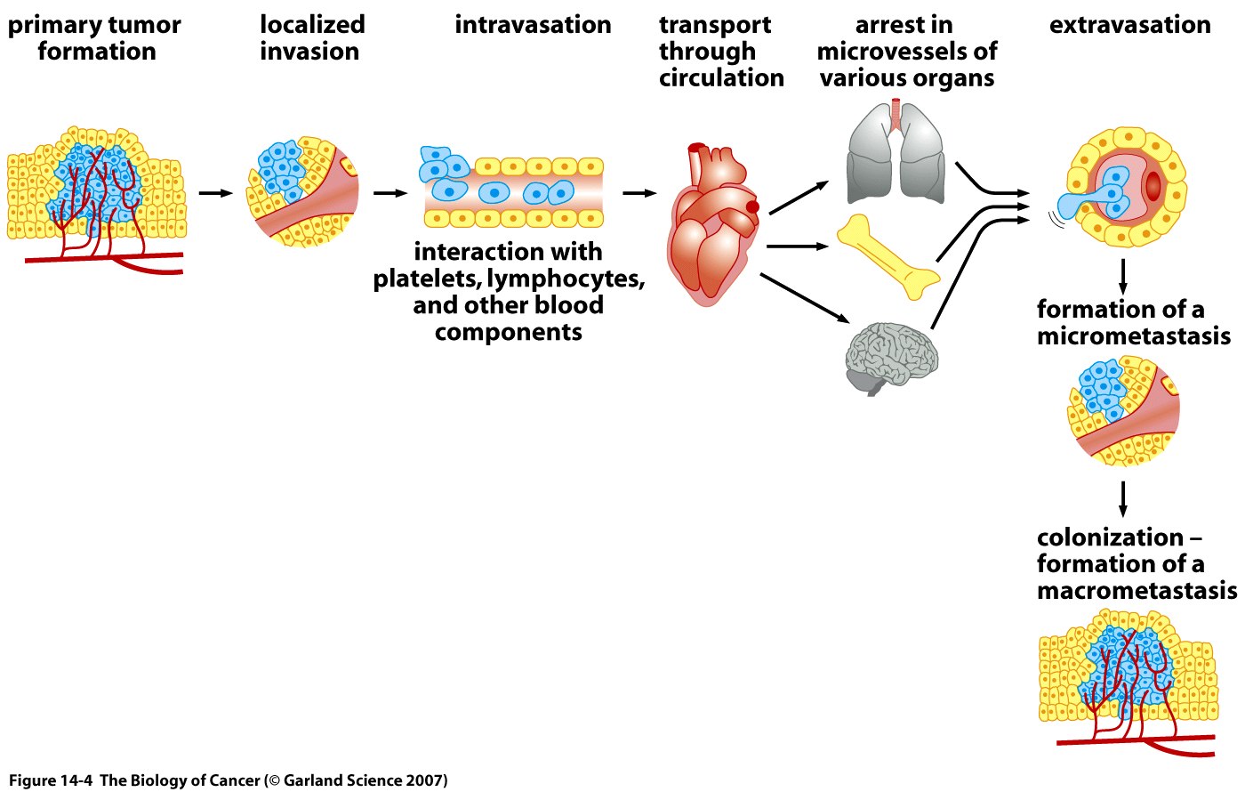 This Concept Map, created with IHMC CmapTools, has information related to: Chapter 14 discussion, Metastasis seen through fluroescence tagging, Plasmin cleaves pro-MMPs, Metastasis occurs when tumor with blood vessels, epithelial mesenchymal transiton used in embryogenesis, macrometastasis is tumor with blood vessels, travel to new site bypasses second basement membrane, filopodia senses area, growth factors e.g. hepatocyte growth factor/scatter factor, tumor with blood vessels usually in endothelial lumen, secondary site must have similar signals, wound healing are already existing mechansims, Rho proteins proper use Rho activation, gastrulation is when cells start moving inward, epithelial mesenchymal transiton tracked using Twist (TF), tumor associated macrophages secrete growth factors, Rac proteins relates to lamelelipodia, entry to circulatory system can be breached by disruption of tissue, Twist (TF) expresses vimentin, lamelelipodia moves cell, epithelial mesenchymal transiton begins with cleavage of E-cAdherins