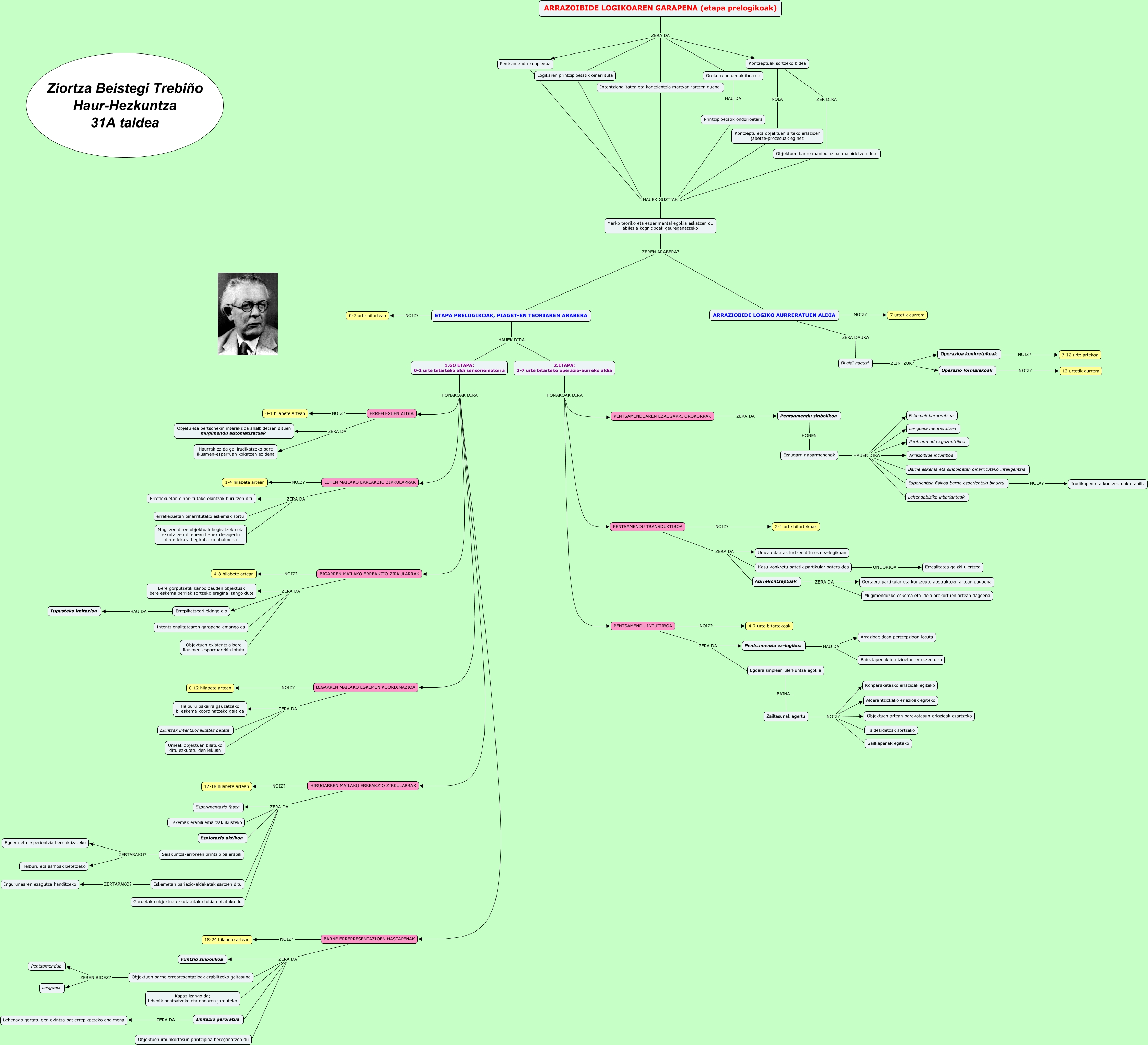 This Concept Map, created with IHMC CmapTools, has information related to: 4_mapa_beistegi_trebiño, BIGARREN MAILAKO ESKEMEN KOORDINAZIOA ZERA DA Ekintzak intentzionalitatez beteta, PENTSAMENDU TRANSDUKTIBOA ZERA DA Aurrekontzeptuak, ARRAZOIBIDE LOGIKOAREN GARAPENA (etapa prelogikoak) ZERA DA Pentsamendu konplexua, HIRUGARREN MAILAKO ERREAKZIO ZIRKULARRAK ZERA DA Esplorazio aktiboa, HIRUGARREN MAILAKO ERREAKZIO ZIRKULARRAK ZERA DA Eskemetan bariazio/aldaketak sartzen ditu, Kontzeptu eta objektuen arteko erlazioen jabetze-prozesuak eginez HAUEK GUZTIAK Marko teoriko eta esperimental egokia eskatzen du abilezia kognitiboak geureganatzeko, Objektuen barne errepresentazioak erabiltzeko gaitasuna ZEREN BIDEZ? Pentsamendua, LEHEN MAILAKO ERREAKZIO ZIRKULARRAK ZERA DA erreflexuetan oinarritutako eskemak sortu, BIGARREN MAILAKO ERREAKZIO ZIRKULARRAK NOIZ? 4-8 hilabete artean, Egoera sinpleen ulerkuntza egokia BAINA... Zailtasunak agertu, BIGARREN MAILAKO ERREAKZIO ZIRKULARRAK ZERA DA Objektuen existentzia bere ikusmen-esparruarekin lotuta, BARNE ERREPRESENTAZIOEN HASTAPENAK ZERA DA Funtzio sinbolikoa, Pentsamendu sinbolikoa HONEN Ezaugarri nabarmenenak, ARRAZOIBIDE LOGIKOAREN GARAPENA (etapa prelogikoak) ZERA DA Orokorrean deduktiboa da, PENTSAMENDU INTUITIBOA ZERA DA Pentsamendu ez-logikoa, ERREFLEXUEN ALDIA ZERA DA Objetu eta pertsonekin interakzioa ahalbidetzen dituen mugimendu automatizatuak, 1.GO ETAPA: 0-2 urte bitarteko aldi sensoriomotorra HONAKOAK DIRA HIRUGARREN MAILAKO ERREAKZIO ZIRKULARRAK, Marko teoriko eta esperimental egokia eskatzen du abilezia kognitiboak geureganatzeko ZEREN ARABERA? ETAPA PRELOGIKOAK, PIAGET-EN TEORIAREN ARABERA, Ezaugarri nabarmenenak HAUEK DIRA Eskemak barneratzea, Ezaugarri nabarmenenak HAUEK DIRA Lengoaia menperatzea