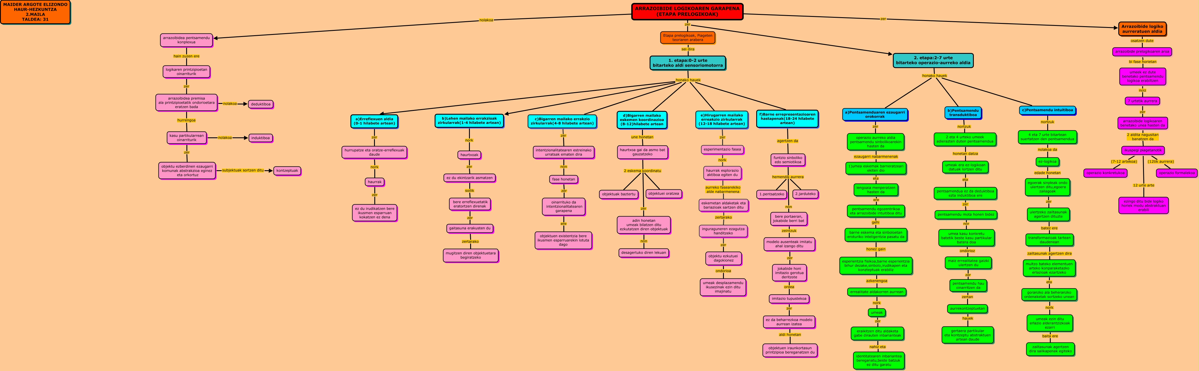 This Concept Map, created with IHMC CmapTools, has information related to: 4_mapa_Argote_Elizondo, ikuspegi piagetanotik 12 urte arte ezingo ditu bide logiko horiek modu abstraktuan erabili, funtzio sinboliko edo semiotikoa hemendik aurrera 2.jarduteko, goranzko ala beheranzko ordenaketak sortzeko unean nork umeak ezin ditu erlazio alderantzizkoak ezarri, d)Bigarren mailako eskemen koordinazioa (8-12)hilabete artean une honetan haurtxoa gai da asmo bat gauzatzeko, b)Lehen mailako errakzioak zirkularrak(1-4 hilabete artean) nork haurtxoak, arrazoibidea premisa ala printzipioetatik ondorioetara eratzen bada hurrengoa kasu partikularrean oinarriturik, a)Pentsamenduaren ezaugarri orokorrak zer operazio aurreko aldia pentsamendu sinbolikoarekin hasten da, ez da beharrezkoa modelo aurrean izatea aldi honetan objektuen iraunkortasun printzipioa bereganatzen du, gaitasuna erakusten du zertarako mugitzen diren objektuetara begiratzeko, ARRAZOIBIDE LOGIKOAREN GARAPENA (ETAPA PRELOGIKOAK) zer 2. etapa:2-7 urte bitarteko operazio-aurreko aldia, 2 eta 4 urteko umeek adierazten duten pentsamendua honetan datza umeak era ez-logikoan datuak lortzen ditu, 4 eta 7 urte bitartean suertatzen den pentsamendua nolakoa da ez-logikoa, fase honetan zer oinarrituko da intentzionalitatearen garapena, b)Pentsamendu transduktiboa nortzuk 2 eta 4 urteko umeek adierazten duten pentsamendua, esperimentazio fasea nork haurrak esplorazio aktiboa egiten du, 2. etapa:2-7 urte bitarteko operazio-aurreko aldia honako hauek b)Pentsamendu transduktiboa, umeek ez dute benetako pentsamendu logikoa erabiltzen noiz 7 urtetik aurrera, hurrupatze eta oratze-erreflexuak daude nork haurrak, 2. etapa:2-7 urte bitarteko operazio-aurreko aldia honako hauek a)Pentsamenduaren ezaugarri orokorrak, funtzio sinboliko edo semiotikoa hemendik aurrera 1.pentsatzeko