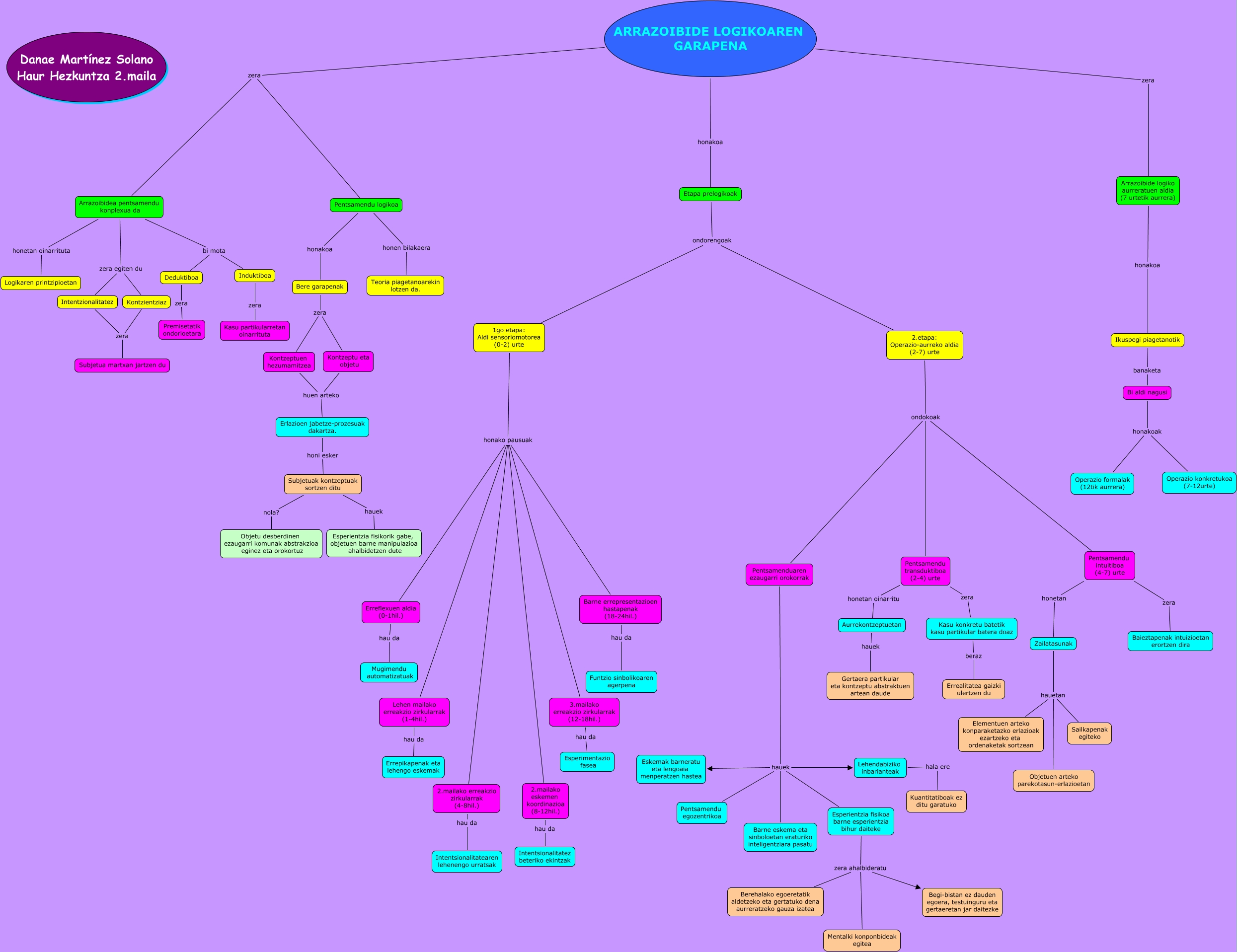 This Concept Map, created with IHMC CmapTools, has information related to: 4.mapa_martinez_solano, Etapa prelogikoak ondorengoak 1go etapa: Aldi sensoriomotorea (0-2) urte, Esperientzia fisikoa barne esperientzia bihur daiteke zera ahalbideratu Berehalako egoeretatik aldetzeko eta gertatuko dena aurreratzeko gauza izatea, Erreflexuen aldia (0-1hil.) hau da Mugimendu automatizatuak, Intentzionalitatez zera Subjetua martxan jartzen du, Esperientzia fisikoa barne esperientzia bihur daiteke zera ahalbideratu Begi-bistan ez dauden egoera, testuinguru eta gertaeretan jar daitezke, Zailatasunak hauetan Sailkapenak egiteko, Erlazioen jabetze-prozesuak dakartza. honi esker Subjetuak kontzeptuak sortzen ditu, Bi aldi nagusi honakoak Operazio formalak (12tik aurrera), 1go etapa: Aldi sensoriomotorea (0-2) urte honako pausuak 2.mailako erreakzio zirkularrak (4-8hil.), Pentsamenduaren ezaugarri orokorrak hauek Barne eskema eta sinboloetan eraturiko inteligentziara pasatu, ARRAZOIBIDE LOGIKOAREN GARAPENA zera Arrazoibide logiko aurreratuen aldia (7 urtetik aurrera), 2.etapa: Operazio-aurreko aldia (2-7) urte ondokoak Pentsamendu transduktiboa (2-4) urte, Pentsamendu intuitiboa (4-7) urte honetan Zailatasunak, Bi aldi nagusi honakoak Operazio konkretukoa (7-12urte), 1go etapa: Aldi sensoriomotorea (0-2) urte honako pausuak Erreflexuen aldia (0-1hil.), Lehendabiziko inbarianteak hala ere Kuantitatiboak ez ditu garatuko, 2.etapa: Operazio-aurreko aldia (2-7) urte ondokoak Pentsamendu intuitiboa (4-7) urte, 1go etapa: Aldi sensoriomotorea (0-2) urte honako pausuak 2.mailako eskemen koordinazioa (8-12hil.), Subjetuak kontzeptuak sortzen ditu nola? Objetu desberdinen ezaugarri komunak abstrakzioa eginez eta orokortuz, Bere garapenak zera Kontzeptuen hezumamitzea