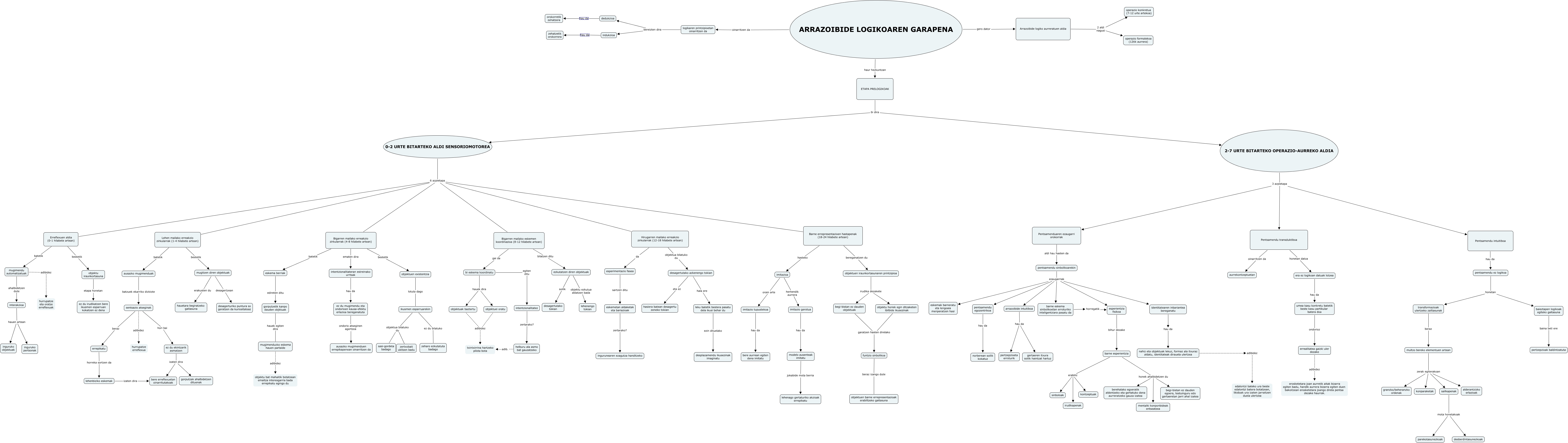 This Concept Map, created with IHMC CmapTools, has information related to: 4_mapa_Ferro_Maiztegi, objektuen existentzia lotuta dago ikusmen esparruarekin, ikusmen esparruarekin objektua bilatuko du zertxobait ukitzen badu, ikusmen esparruarekin ez du bilatuko zeharo ezkutatuta badago, arrazoibide intuitiboa hau da gertaeren itxura soilik haintzat hartuz, imitazioa hemendik aurrera imitazio gerotua, multzo bereko elementuen artean zerak egiterakoan granzko/beheranzko ordenak, baieztapen logikoak egiteko gaitasuna baina beti ere pertzepzioak baldintzatuta, ARRAZOIBIDE LOGIKOAREN GARAPENA haur hezkuntzan ETAPA PRELOGIKOAK, ezkutatzen diren objektuak objektu ezkutua aldatzen bada lehenengo tokian, Hirugarren mailako erreakzio zirkularrak (12-18 hilabete artean) da esperimentazio fasea, 0-2 URTE BITARTEKO ALDI SENSORIOMOTOREA 6 azpietapa Bigarren mailako erreakzio zirkularrak (4-8 hilabete artean), mugitzen diren objektuak desagertzean desagerturiko puntura so geratzen da kuriositateaz, Erreflexuen aldia (0-1 hilabete artean) bestetik objektu iraunkortasuna, desagertutako azkenengo tokian eta ez hasiera batean desagertu zeneko tokian, ez du ekintzarik asmatzen izaten dira gorputzak ahalbidetzen dituenak, objektuei oratu adibidez txintxirrina hartzeko pilota bota, Barne errepresentazioen hastapenak (18-24 hilabete artean) bereganatzen du objektuen iraunkortasunaren printzipioa, errepikatu horreka sortzen da lehenbiziko eskemak, ez du ekintzarik asmatzen izaten dira bere erreflexuetan oinarritutakoak, barne esperientzia honek ahalbidetzen du begi-bistan ez dauden egoera, testuinguru edo gertaeretan jarri ahal izatea