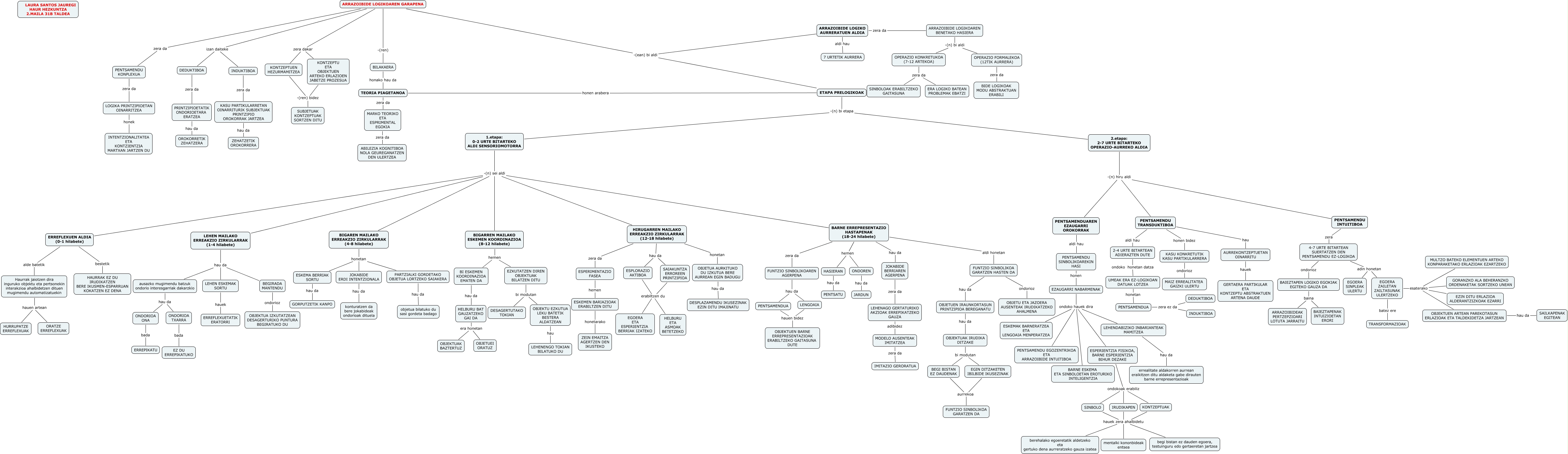 This Concept Map, created with IHMC CmapTools, has information related to: 4_mapa_ santos_jauregi, HIRUGARREN MAILAKO ERREAKZIO ZIRKULARRAK (12-18 hilabete) hau da SAIAKUNTZA ERROREEN PRINTZIPIOA, ESPERIENTZIA FISIKOA, BARNE ESPERIENTZIA BIHUR DEZAKE ondokoak erabiliz KONTZEPTUAK, OBJETUA AURKITUKO DU IZKUTUA BERE AURREAN EGIN BADUGU hau da DESPLAZAMENDU IKUSEZINAK EZIN DITU IMAJINATU, TEORIA PIAGETANOA honen arabera ETAPA PRELOGIKOAK, KONTZEPTUAK hauek zera ahalbidetu begi bistan ez dauden egoera, testuinguru edo gertaeretan jartzea, BIGARREN MAILAKO ESKEMEN KOORDINAZIOA (8-12 hilabete) hemen BI ESKEMEN KOORDINAZIOA EMATEN DA, BARNE ERREPRESENTAZIO HASTAPENAK (18-24 hilabete) hemen HASIERAN, KASU PARTIKULARRETAN OINARRITURIK SUBJEKTUAK PRINTZIPIO OROKORRAK JARTZEA hau da ZEHATZETIK OROKORRERA, IRUDIKAPEN hauek zera ahalbidetu berehalako egoeretatik aldetzeko eta gertuko dena aurreratzeko gauza izatea, ARRAZOIBIDE LOGIKOAREN GARAPENA zera dakar KONTZEPTUEN HEZURMAMITZEA, KONTZEPTUAK hauek zera ahalbidetu berehalako egoeretatik aldetzeko eta gertuko dena aurreratzeko gauza izatea, KONTZEPTUAK hauek zera ahalbidetu mentalki kononbideak entsea, ARRAZOIBIDE LOGIKOAREN GARAPENA -(ean) bi aldi ARRAZOIBIDE LOGIKO AURRERATUEN ALDIA, JOKABIDE ERDI INTENTZIONALA hau da konturatzen da bere jokabideak ondorioak dituela, INDUKTIBOA zera da KASU PARTIKULARRETAN OINARRITURIK SUBJEKTUAK PRINTZIPIO OROKORRAK JARTZEA, BAIEZTAPEN LOGIKO EGOKIAK EGITEKO GAUZA DA baina BAIEZTAPENAK INTUIZIOETAN ERORI, HELBURU BAT GAUZATZEKO GAI DA era honetan OBJETUEI ORATUZ, FUNTZIO SINBOLIKOA GARATZEN HASTEN DA hau da OBJETUEN IRAUNKORTASUN PRINTZIPIOA BEREGANATU, JOKABIDE BERRIAREN AGERPENA zera da LEHENAGO GERTATURIKO AKZIOAK ERREPIKATZEKO GAUZA, MODELO AUSENTEAK IMITATZEA zera da IMITAZIO GERORATUA