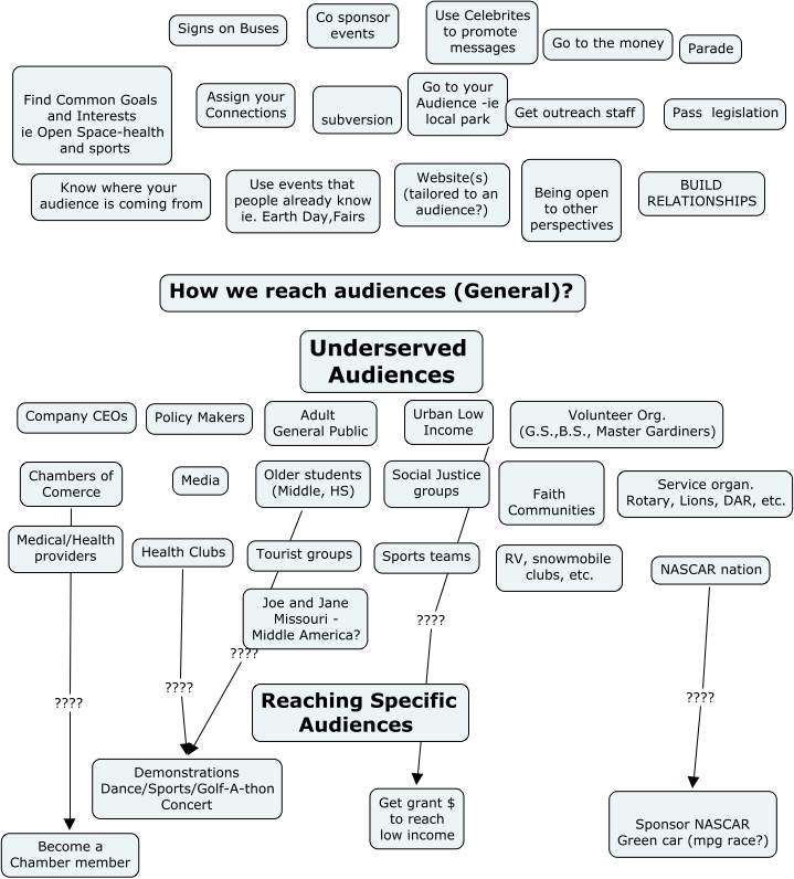 NEEEA07-B-v2-Audience, Chambers of Comerce ???? Become a Chamber member, NASCAR nation ???? Sponsor NASCAR Green car (mpg race?), Health Clubs ???? Demonstrations Dance/Sports/Golf-A-thon Concert, Urban Low Income ???? Get grant $ to reach low income, Older students (Middle, HS) ???? Demonstrations Dance/Sports/Golf-A-thon Concert