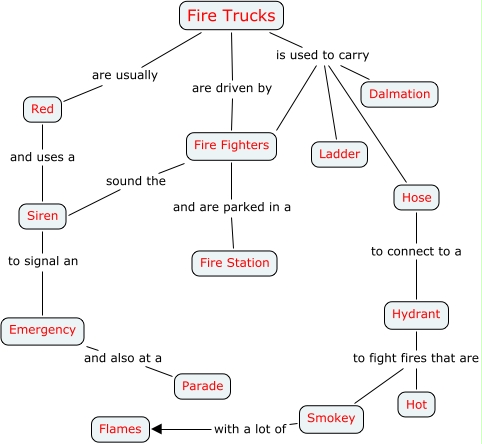 This Concept Map, created with IHMC CmapTools, has information related to: Fire Truck, Fire Trucks is used to carry Fire Fighters, Fire Trucks are driven by Fire Fighters, Fire Trucks is used to carry Hose, Hydrant to fight fires that are Hot, Emergency and also at a Parade, Fire Fighters and are parked in a Fire Station, Red and uses a Siren, Smokey with a lot of Flames, Fire Trucks is used to carry Dalmation, Fire Trucks is used to carry Ladder, Siren to signal an Emergency, Fire Trucks are usually Red, Hose to connect to a Hydrant, Hydrant to fight fires that are Smokey, Fire Fighters sound the Siren