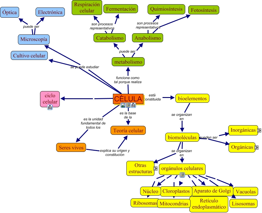 Este mapa conceptual tiene información relacionada a: Presentacióncelula, CÉLULA está constituida bioelementos, orgánulos celulares Cloroplastos, Microscopía Electrónica, orgánulos celulares Lisosomas, CÉLULA es la unidad fundamental de todos los Seres vivos, orgánulos celulares Vacuolas, Anabolismo Fotosíntesis, orgánulos celulares Aparato de Golgi, Seres vivos explica su origen y constitución Teoría celular, orgánulos celulares Núcleo, CÉLULA se puede estudiar Microscopía, CÉLULA Cultivo celular, biomoléculas Membrana plasmática, orgánulos celulares Ribosomas, orgánulos celulares Retículo endoplasmático, biomoléculas se organizan en orgánulos celulares, Anabolismo son procesos representativos Quimiosíntesis, Catabolismo son procesos representativos Respiración celular, biomoléculas Glúcidos, Microscopía puede ser Óptica