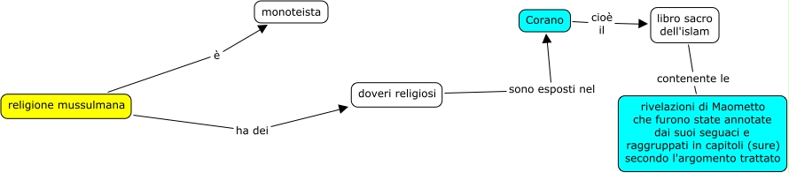 Questa Cmap, creata con IHMC CmapTools, contiene informazioni relative a: 07 La religione Islamica (o mussulmana), religione mussulmana è monoteista, doveri religiosi sono esposti nel Corano, libro sacro dell'islam contenente le rivelazioni di Maometto che furono state annotate dai suoi seguaci e raggruppati in capitoli (sure) secondo l'argomento trattato, Corano cioè il libro sacro dell'islam, religione mussulmana ha dei doveri religiosi