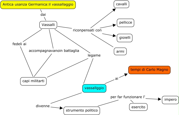 Questa Cmap, creata con IHMC CmapTools, contiene informazioni relative a: 3 L'organizzazione del Sacro Impero, Vassalli riconpensati con gioielli, Vassalli legame vassallggio, Vassalli accompagnavanoin battaglia capi militarti, Vassalli fedeli ai capi militarti, strumento politico per far funzionare l' impero, Antica usanza Germanica:il vassallaggio dai Vassalli, Vassalli riconpensati con cavalli, vassallggio ai tempi di Carlo Magno, vassallggio divenne strumento politico, Vassalli riconpensati con armi, Vassalli legame capi militarti, Vassalli riconpensati con pellicce, strumento politico per far funzionare l' esercito