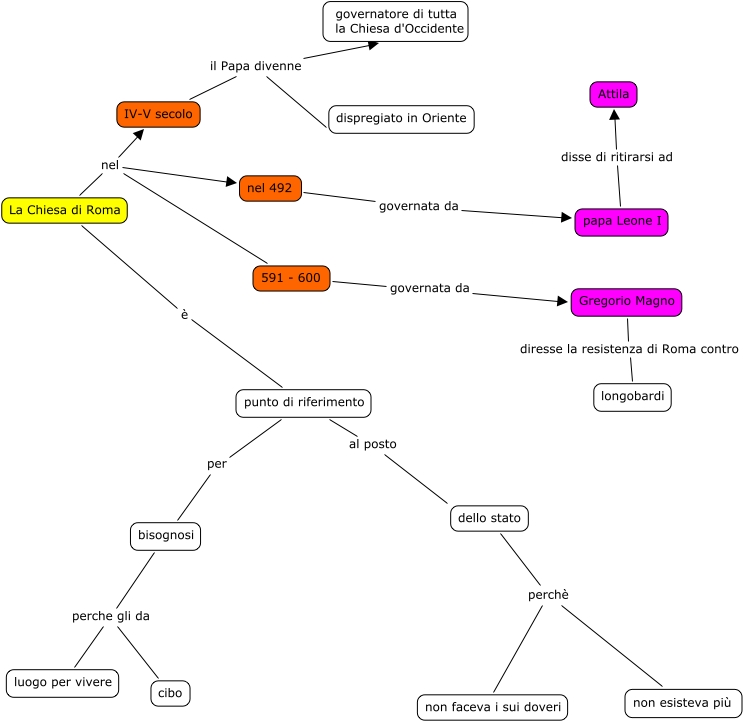 Questa Cmap, creata con IHMC CmapTools, contiene informazioni relative a: 6 La Chiesa Romana, IV-V secolo il Papa divenne dispregiato in Oriente, La Chiesa di Roma nel nel 492, papa Leone I disse di ritirarsi ad Attila, Gregorio Magno diresse la resistenza di Roma contro longobardi, La Chiesa di Roma nel IV-V secolo, dello stato perchè non esisteva più, IV-V secolo il Papa divenne governatore di tutta la Chiesa d'Occidente, 591 - 600 governata da Gregorio Magno, punto di riferimento per bisognosi, punto di riferimento al posto dello stato, La Chiesa di Roma è punto di riferimento, nel 492 governata da papa Leone I, bisognosi perche gli da luogo per vivere, bisognosi perche gli da cibo, dello stato perchè non faceva i sui doveri, La Chiesa di Roma nel 591 - 600