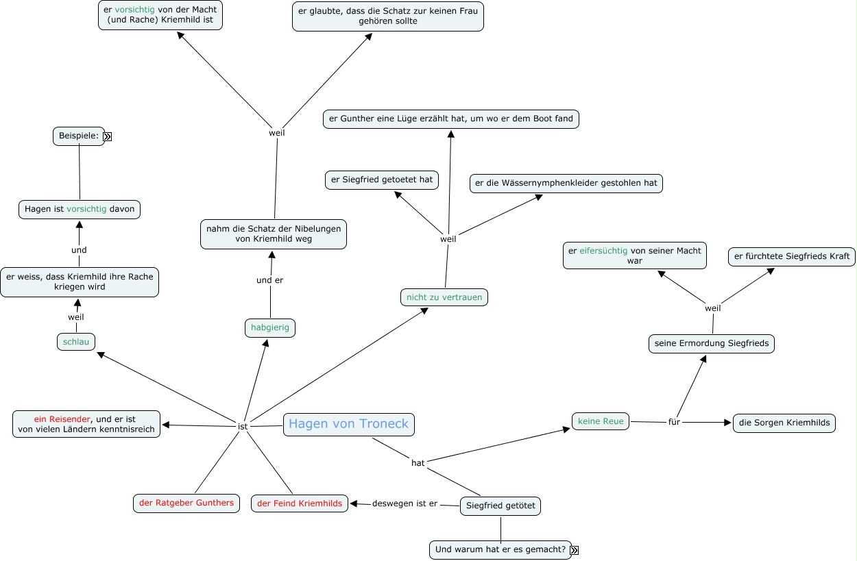 This Concept Map, created with IHMC CmapTools, has information related to: Hagen von Troneck, er wartete eine lange Weile, Etzels Angebotene wegzuschicken in Hoffnungen, dass Kriemhild keinen Angriff vorbereiten konnte, Hagen von Troneck ist nicht zu vertrauen, Hagen von Troneck ist ein Reisender, und er ist von vielen Ländern kenntnisreich, Hagen von Troneck hat Siegfried getötet, Siegfried getötet weil Siegfried Brünhild betrügt hat, schlau weil er weiss, dass Kriemhild ihre Rache kriegen wird, seine Ermordung Siegfrieds weil er eifersüchtig von seiner Macht war, keine Reue für seine Ermordung Siegfrieds, Siegfried getötet weil Siegfried Brünhilds Ring gestolen hat, Hagen von Troneck hat keine Reue, er weiss, dass Kriemhild ihre Rache kriegen wird und Hagen ist vorsichtig davon, nahm die Schatz der Nibelungen von Kriemhild weg weil er vorsichtig von der Macht (und Rache) Kriemhild ist, nahm die Schatz der Nibelungen von Kriemhild weg weil er glaubte, dass die Schatz zur keinen Frau gehören sollte, Siegfried getötet weil Siegfried und Kriemhild Brünhild beleidigten, Hagen von Troneck ist schlau, nicht zu vertrauen weil er Gunther eine Lüge erzählt hat, um wo er dem Boot fand, habgierig und er nahm die Schatz der Nibelungen von Kriemhild weg, keine Reue für die Sorgen Kriemhilds, Hagen von Troneck ist der Ratgeber Gunthers, Hagen von Troneck ist der Feind Kriemhilds