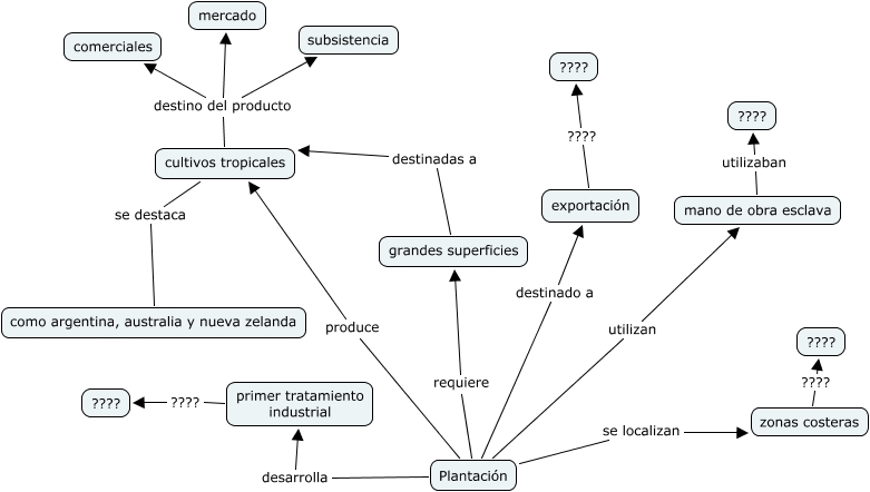 Este mapa conceptual tiene información relacionada a: plantacion marcos rivas 3°3°, cultivos tropicales destino del producto subsistencia, zonas costeras ???? ????, Plantación se localizan zonas costeras, cultivos tropicales destino del producto comerciales, cultivos tropicales se destaca como argentina, australia y nueva zelanda, Plantación produce cultivos tropicales, exportación ???? ????, Plantación destinado a exportación, grandes superficies destinadas a cultivos tropicales, mano de obra esclava utilizaban ????
