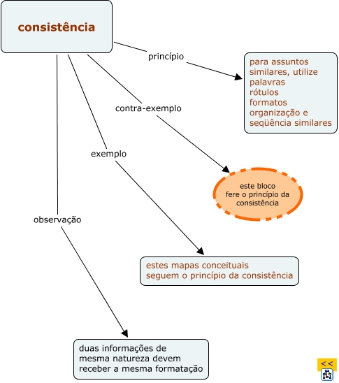 Esse mapa conceitual, produzido no IHMC CmapTools, tem a informação relacionada a: principio_consistencia, consistência exemplo estes mapas conceituais seguem o princípio da consistência, consistência princípio para assuntos similares, utilize palavras rótulos formatos organização e seqüência similares, consistência contra-exemplo este bloco fere o princípio da consistência, consistência observação duas informações de mesma natureza devem receber a mesma formatação