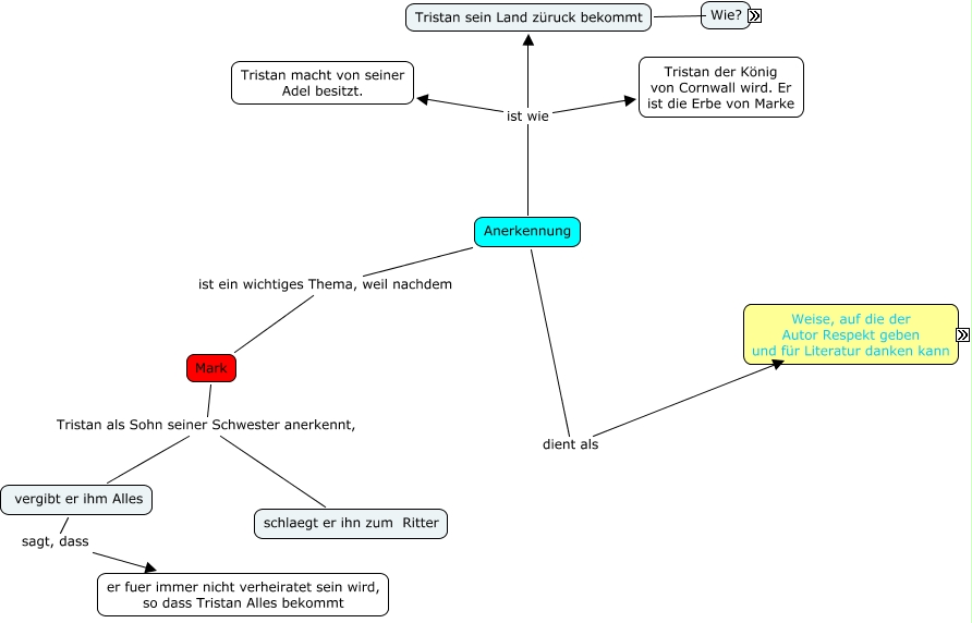 This Concept Map, created with IHMC CmapTools, has information related to: Anerkennung, die Nachtigallen sind Vögel, die während der Nacht singen., Der Autor gibt... Anerkennung die Nachtigallen, Der Autor gibt... Anerkennung Siegfried, Tristan sein Land züruck bekommt Morgan will nicht Tristan anerkennen und ihn sein Land geben, deswegen tötet Tristan Morgan. Tristan und sein Ritter kämpfen gegen Morgans Ritter und dadurch bekommt Tristan wieder sein Lehensgut., Anerkennung ist ein wichtiges Thema, weil nachdem Mark, Anerkennung dient als Der Autor, Anerkennung ist wie Tristan sein Land züruck bekommt, vergibt er ihm Alles sagt, dass er fuer immer nicht verheiratet sein wird, so dass Tristan Alles bekommt, Anerkennung ist wie Tristan der König von Cornwall wird. Er ist die Erbe von Marke, Mark Tristan als Sohn seiner Schwester anerkennt, schlaegt er ihn zum Ritter, Anerkennung ist wie Tristan macht von seiner Adel besitzt., Mark Tristan als Sohn seiner Schwester anerkennt, vergibt er ihm Alles, Der Autor gibt... Anerkennung Hartmann von Aue, Der Autor gibt... Anerkennung Heinrich von Veldeke