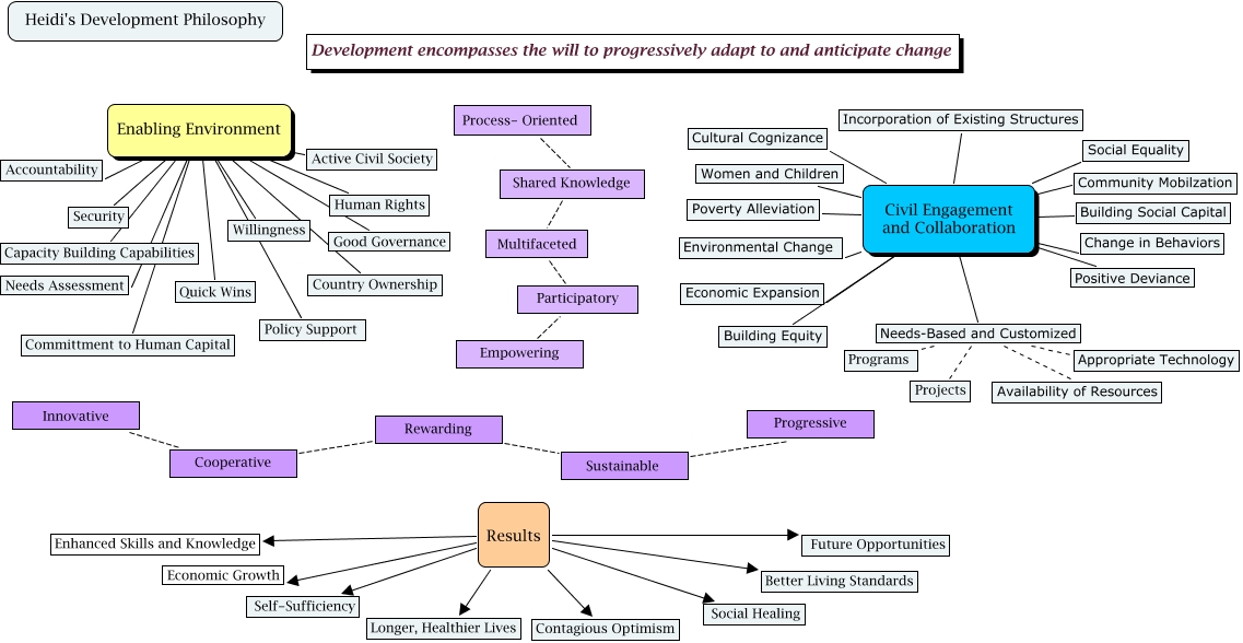 This Concept Map, created with IHMC CmapTools, has information related to: Dev. philosophy Summer 2008, Empowering Participatory, Civil Engagement and Collaboration Incorporation of Existing Structures, Civil Engagement and Collaboration Building Equity, Enabling Environment Human Rights, Civil Engagement and Collaboration Community Mobilzation, Enabling Environment Accountability, Results Longer, Healthier Lives, Results Better Living Standards, Civil Engagement and Collaboration Social Equality, Civil Engagement and Collaboration Environmental Change, Enabling Environment Security, Process- Oriented Shared Knowledge, Enabling Environment Good Governance, Needs-Based and Customized Programs, Cooperative Rewarding, Civil Engagement and Collaboration Needs-Based and Customized, Needs-Based and Customized Appropriate Technology, Multifaceted Participatory, Civil Engagement and Collaboration Building Social Capital, Rewarding Sustainable