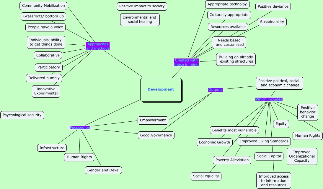 This Concept Map, created with IHMC CmapTools, has information related to: Tye Sundlee philosophy map, Development Focused on Good Governance, Positive political, social, and economic change Which includes Poverty Alleviation, Positive political, social, and economic change Which includes Human Rights, Good Governance Outputs Positive political, social, and economic change, Development Created with these in mind Building on already existing structures, Development Approaches and methods Individuals' ability to get things done, Positive political, social, and economic change Which includes Improved Living Standards, Positive political, social, and economic change Which includes Social equality, Positive political, social, and economic change Which includes Equity, Development Focused on Gender and Devel, Development Focused on Infrastructure, Development Approaches and methods Grassroots/ bottom up, Development Created with these in mind Resources available, Development Approaches and methods Community Mobilization, Development Approaches and methods Collaborative, Development Approaches and methods Delivered humbly, Development Approaches and methods Innovative Experimental, Development Approaches and methods Participatory, Development Focused on Empowerment, Development Created with these in mind Culturally appropriate