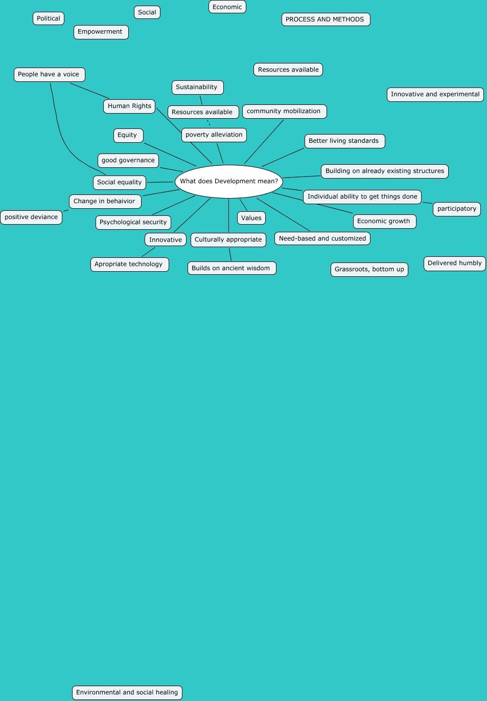 This Concept Map, created with IHMC CmapTools, has information related to: Rita Udisho Philos map, Economic growth What does Development mean?, What does Development mean? Human Rights, Psychological security What does Development mean?, Builds on ancient wisdom Culturally appropriate, Change in behaivior What does Development mean?, What does Development mean? Need-based and customized, Culturally appropriate What does Development mean?, What does Development mean? poverty alleviation, What does Development mean? Equity, Resources available Sustainability, What does Development mean? Better living standards, Apropriate technology Innovative, positive deviance Change in behaivior, People have a voice Human Rights, Social equality People have a voice, What does Development mean? Individual ability to get things done, What does Development mean? community mobilization, Individual ability to get things done participatory, Innovative What does Development mean?, Values What does Development mean?