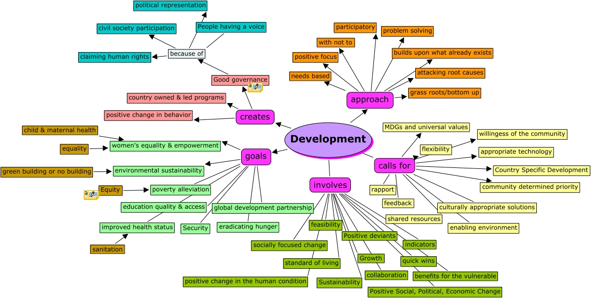 This Concept Map, created with IHMC CmapTools, has information related to: HilaryOrzelPhilosophy, goals poverty alleviation, involves collaboration, involves indicators, because of civil society participation, goals global development partnership, calls for rapport, sanitation improved health status, goals Security, Equity poverty alleviation, People having a voice because of, approach participatory, creates Good governance, because of claiming human rights, calls for willingess of the community, approach builds upon what already exists, goals eradicating hunger, because of political representation, calls for flexibility, Development involves, involves Positive deviants