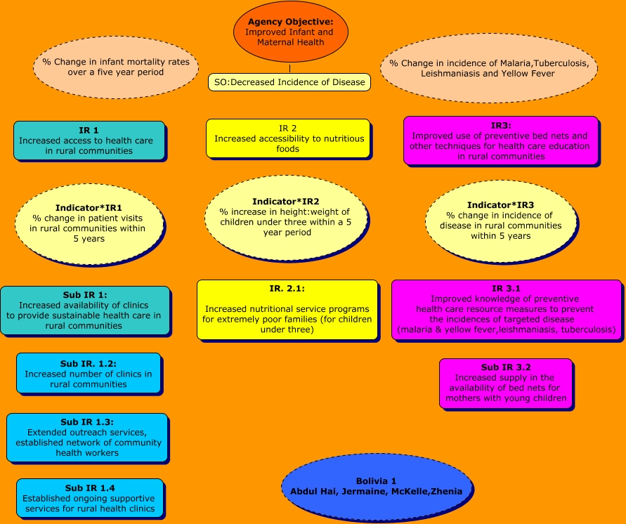 This Concept Map, created with IHMC CmapTools, has information related to: Bolivia I (Result Framework), Agency Objective: Improved Infant and Maternal Health SO:Decreased Incidence of Disease