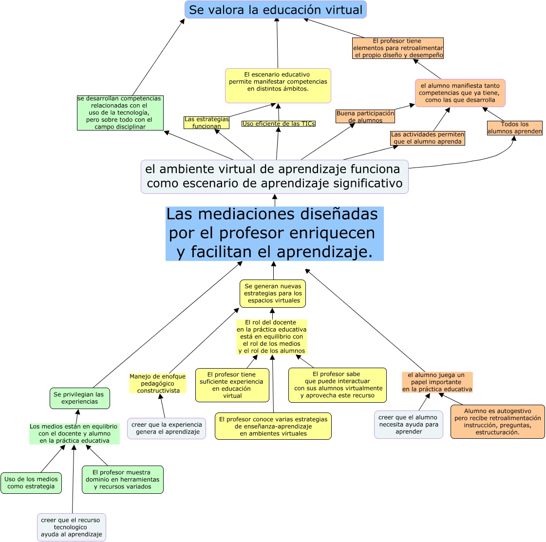 Este Cmap, tiene información relacionada con: Arbol objetivos DATICA1G1, Alumno es autogestivo pero recibe retroalimentación instrucción, preguntas, estructuración. el alumno juega un papel importante en la práctica educativa, Se generan nuevas estrategias para los espacios virtuales Las mediaciones diseñadas por el profesor enriquecen y facilitan el aprendizaje. el ambiente virtual de aprendizaje funciona como escenario de aprendizaje significativo, creer que el recurso tecnologico ayuda al aprendizaje Los medios están en equiibrio con el docente y alumno en la práctica educativa Se privilegian las experiencias, el ambiente virtual de aprendizaje funciona como escenario de aprendizaje significativo Todos los alumnos aprenden el alumno manifiesta tanto competencias que ya tiene, como las que desarrolla, El profesor conoce varias estrategias de enseñanza-aprendizaje en ambientes virtuales El rol del docente en la práctica educativa está en equilibrio con el rol de los medios y el rol de los alumnos Se generan nuevas estrategias para los espacios virtuales, Se privilegian las experiencias Las mediaciones diseñadas por el profesor enriquecen y facilitan el aprendizaje. el ambiente virtual de aprendizaje funciona como escenario de aprendizaje significativo, el ambiente virtual de aprendizaje funciona como escenario de aprendizaje significativo se desarrollan competencias relacionadas con el uso de la tecnología, pero sobre todo con el campo disciplinar Se valora la educación virtual, creer que la experiencia genera el aprendizaje Manejo de enofque pedagógico constructivista Se generan nuevas estrategias para los espacios virtuales, el alumno manifiesta tanto competencias que ya tiene, como las que desarrolla El profesor tiene elementos para retroalimentar el propio diseño y desempeño Se valora la educación virtual, el ambiente virtual de aprendizaje funciona como escenario de aprendizaje significativo Las actividades permiten que el alumno aprenda el alumno manifiesta tanto competencias que ya tiene, como las que desarrolla, el ambiente virtual de aprendizaje funciona como escenario de aprendizaje significativo Uso eficiente de las TICs El escenario educativo permite manifestar competencias en distintos ámbitos., El profesor tiene suficiente experiencia en educación virtual El rol del docente en la práctica educativa está en equilibrio con el rol de los medios y el rol de los alumnos Se generan nuevas estrategias para los espacios virtuales, El escenario educativo permite manifestar competencias en distintos ámbitos. ???? Se valora la educación virtual, creer que el alumno necesita ayuda para aprender el alumno juega un papel importante en la práctica educativa, El profesor sabe que puede interactuar con sus alumnos virtualmente y aprovecha este recurso El rol del docente en la práctica educativa está en equilibrio con el rol de los medios y el rol de los alumnos Se generan nuevas estrategias para los espacios virtuales, El profesor muestra dominio en herramientas y recursos variados Los medios están en equiibrio con el docente y alumno en la práctica educativa Se privilegian las experiencias, el ambiente virtual de aprendizaje funciona como escenario de aprendizaje significativo Las estrategias funcionan El escenario educativo permite manifestar competencias en distintos ámbitos., el ambiente virtual de aprendizaje funciona como escenario de aprendizaje significativo Buena participación de alumnos el alumno manifiesta tanto competencias que ya tiene, como las que desarrolla, Uso de los medios como estrategia Los medios están en equiibrio con el docente y alumno en la práctica educativa Se privilegian las experiencias