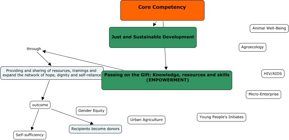 This Concept Map, created with IHMC CmapTools, has information related to: Heifer International, Passing on the Gift: Knowledge, resources and skills (EMPOWERMENT) through Providing and sharing of resources, trainings and expand the network of hope, dignity and self-reliance, outcome Recipients become donors, Core Competency Just and Sustainable Development, outcome Self-sufficiency, Providing and sharing of resources, trainings and expand the network of hope, dignity and self-reliance outcome, Core Competency Passing on the Gift: Knowledge, resources and skills (EMPOWERMENT)