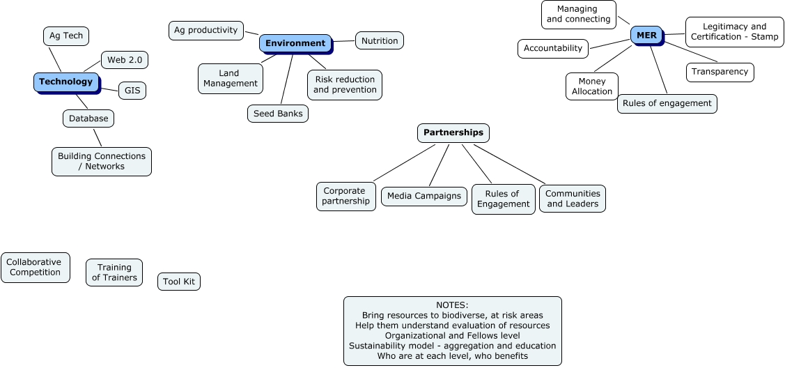 This Concept Map, created with IHMC CmapTools, has information related to: ACIIA, Seed Banks Environment, Database Building Connections / Networks, Technology Ag Tech, Technology Database, MER Accountability, Partnerships Rules of Engagement, Environment Nutrition, Environment Risk reduction and prevention, Partnerships Media Campaigns, Partnerships Communities and Leaders, Environment Ag productivity, Partnerships Corporate partnership, Technology GIS, MER Managing and connecting, MER Rules of engagement, MER Transparency, MER Money Allocation, MER Legitimacy and Certification - Stamp, Land Management Environment, Technology Web 2.0