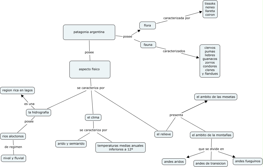 Este mapa conceptual tiene información relacionada a: el cmap de damian okuyama, patagonia argentina posee fauna, el relieve presenta el ambito de la montañas, patagonia argentina posee aspecto fisico, el ambito de la montañas que se divide en andes de transicion, el relieve presenta el ambito de las mesetas, el clima se caracteriza por temperaturas medias anuales inferiores a 12º, el relieve presenta el ambito de las mesetas, aspecto fisico se caracteriza por el clima, patagonia argentina posee flora, rios aloctonos de regimen nival y fluvial