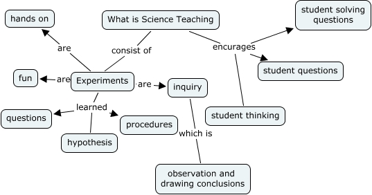 This Concept Map has information related to: Teribumteaching2, inquiry which is observation and drawing conclusions, Experiments are inquiry, What is Science Teaching consist of Experiments, Experiments learned questions, Experiments learned procedures, What is Science Teaching encurages student solving questions, What is Science Teaching encurages student thinking, Experiments are fun, Experiments are hands on, What is Science Teaching encurages student questions
