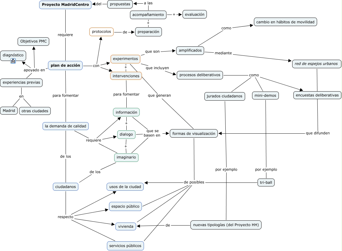 Este Cmap, tiene información relacionada con: Esquema_Proyecto_EstadioBorrador-04, la demanda de calidad requiere imaginario, tri-ball de posibles vivienda, protocolos de preparación, información + dialogo, ciudadanos respecto vivienda, imaginario de los ciudadanos, dialogo que se basen en formas de visualización, plan de acción con experimentos, preparación + acompañamiento, experiencias previas en Madrid, amplificados como cambio en hábitos de movilidad, experimentos + intervenciones, jurados ciudadanos por ejemplo nuevas tipologías (del Proyecto HH), ciudadanos respecto espacio público, procesos deliberativos como mini-demos, plan de acción apoyado en Objetivos PMC, ciudadanos respecto usos de la ciudad, amplificados mediante red de espejos urbanos, información que se basen en formas de visualización, procesos deliberativos como jurados ciudadanos