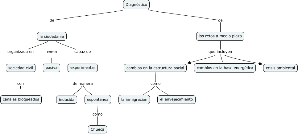 Este Cmap, tiene información relacionada con: Diagnostico_Proyecto_EstadioBorrador, cambios en la estructura social como el envejecimiento, Diagnóstico de la ciudadanía, sociedad civil con canales bloqueados, espontánea como Chueca, la ciudadanía como pasiva, Diagnóstico de los retos a medio plazo, la ciudadanía capaz de experimentar, experimentar de manera inducida, los retos a medio plazo que incluyen cambios en la estructura social, la ciudadanía organizada en sociedad civil, cambios en la estructura social como la inmigración, los retos a medio plazo que incluyen cambios en la base energética, experimentar de manera espontánea, los retos a medio plazo que incluyen crisis ambiental