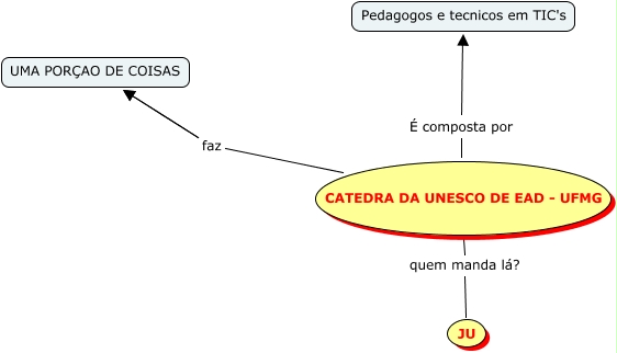 Esse mapa conceitual, produzido no IHMC CmapTools, tem a informação relacionada a: first map, CATEDRA DA UNESCO DE EAD - UFMG faz UMA PORÇAO DE COISAS, CATEDRA DA UNESCO DE EAD - UFMG faz UMA PORÇAO DE COISAS, CATEDRA DA UNESCO DE EAD - UFMG quem manda lá? JU, CATEDRA DA UNESCO DE EAD - UFMG É composta por Pedagogos e tecnicos em TIC's
