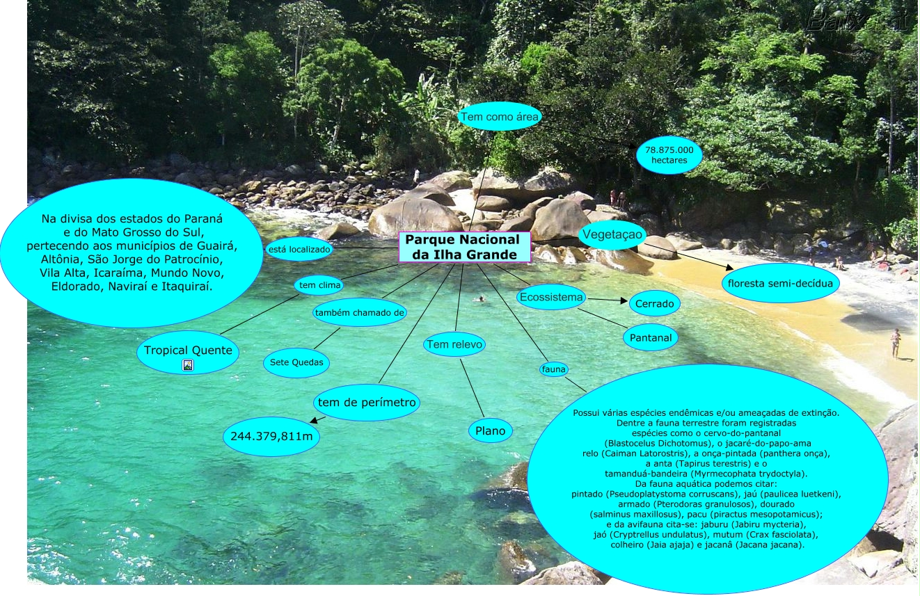 Julia and isinha, Parque Nacional da Ilha Grande Ecossistema Pantanal, Parque Nacional da Ilha Grande tem clima Tropical Quente, Parque Nacional da Ilha Grande fauna Possui várias espécies endêmicas e/ou ameaçadas de extinção. Dentre a fauna terrestre foram registradas espécies como o cervo-do-pantanal (Blastocelus Dichotomus), o jacaré-do-papo-ama relo (Caiman Latorostris), a onça-pintada (panthera onça), a anta (Tapirus terestris) e o tamanduá-bandeira (Myrmecophata trydoctyla). Da fauna aquática podemos citar: pintado (Pseudoplatystoma corruscans), jaú (paulicea luetkeni), armado (Pterodoras granulosos), dourado (salminus maxillosus), pacu (piractus mesopotamicus); e da avifauna cita-se: jaburu (Jabiru mycteria), jaó (Cryptrellus undulatus), mutum (Crax fasciolata), colheiro (Jaia ajaja) e jacanâ (Jacana jacana)., Parque Nacional da Ilha Grande Tem relevo Plano, Parque Nacional da Ilha Grande tem de perímetro 244.379,811m, Parque Nacional da Ilha Grande Ecossistema Cerrado, Parque Nacional da Ilha Grande está localizado Na divisa dos estados do Paraná e do Mato Grosso do Sul, pertecendo aos municípios de Guairá, Altônia, São Jorge do Patrocínio, Vila Alta, Icaraíma, Mundo Novo, Eldorado, Naviraí e Itaquiraí., Parque Nacional da Ilha Grande Vegetaçao floresta semi-decídua, Parque Nacional da Ilha Grande também chamado de Sete Quedas, Parque Nacional da Ilha Grande Tem como área 78.875.000 hectares