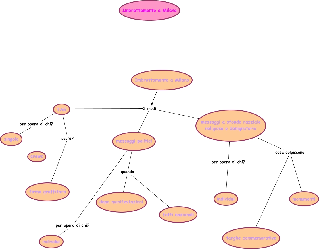 Questa Cmap, creata con IHMC CmapTools, contiene informazioni relative a: imbrattamento a milano, messaggi a sfondo razziale religioso o denigratorio per opera di chi? individui, messaggi a sfondo razziale religioso o denigratorio cosa colpiscono targhe commemorative, messaggi politici per opera di chi? individui, TAG per opera di chi? crews, messaggi politici quando fatti nazionali, TAG per opera di chi? singolo, TAG cos'è? firma graffitaro, messaggi politici quando dopo manifestazioni, Imbrattamento a Milano 3 modi TAG, messaggi a sfondo razziale religioso o denigratorio cosa colpiscono monumenti, Imbrattamento a Milano 3 modi messaggi politici, Imbrattamento a Milano 3 modi messaggi a sfondo razziale religioso o denigratorio