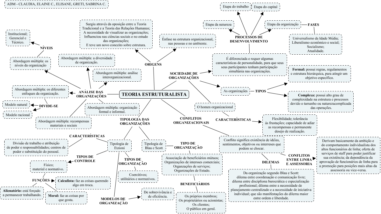 Esse mapa conceitual, produzido no IHMC CmapTools, tem a informação relacionada a: estruturalista, TEORIA ESTRUTURALISTA ANÁLISE DAS ORGANIZAÇÕES Abordagem múltipla: organização formal e informal., TEORIA ESTRUTURALISTA ORIGENS Surgiu através da oposição entre a Teoria Tradicional e a Teoria das Relações Humanas; A necessidade de visualizar as organizações; Influenciou nas ciências sociais e no estudo das organizações; E teve um novo conceito sobre estrutura., Físico; material e normativo. FUNÇÕES Moral: faz as coisas por que gosta., Abordagem múltipla: os diferentes enfoques da organização. DIVIDE-SE Modelo racional, TEORIA ESTRUTURALISTA SOCIEDADE DE ORGANIZAÇÕES O homen organizacional, É diferenciada e requer algumas características de personalidade, para que seus seus participantes tenham participação simultânia nas organizações. PROCESSOS DE DESENVOLVIMENTO Etapa da organização, TEORIA ESTRUTURALISTA TIPOLOGIA DAS ORGANIZAÇÕES Tipologia de Etzioni, Físico; material e normativo. FUNÇÕES Calculista: faz as coisas querendo algo em troca., É diferenciada e requer algumas características de personalidade, para que seus seus participantes tenham participação simultânia nas organizações. PROCESSOS DE DESENVOLVIMENTO Etapa da natureza, TEORIA ESTRUTURALISTA SOCIEDADE DE ORGANIZAÇÕES As organizações, TEORIA ESTRUTURALISTA ANÁLISE DAS ORGANIZAÇÕES Abordagem múltipla: a diversidade de organização., TEORIA ESTRUTURALISTA SOCIEDADE DE ORGANIZAÇÕES É diferenciada e requer algumas características de personalidade, para que seus seus participantes tenham participação simultânia nas organizações., TEORIA ESTRUTURALISTA ANÁLISE DAS ORGANIZAÇÕES Abordagem múltipla: análise interorganizacional., Tipologia de Etzioni TIPOS DE ORGANIZAÇÃO Coercitivos; utilitários e normativos., Associação de beneficiários mútuos; Organizações de intersses comerciais; Organzações de serviços; Organizações de Estado. BENEFICIÁRIOS Os próprios membros; Os proprietários ou acionistas; Os clientes; O público em geral., O homen organizacional CARACTERÍSTICAS Flexibilidade; tolerância às frustações; capacidade de adiar as recompensas e permanente desejo de realização., Tipologia de Etzioni CARACTERÍSTICAS Divisão de trabalho e atribuição de poder e responsabilidades; centros de poder e substituição do pessoal., Abordagem múltipla: os níveis da organização NÍVEIS Institucional; Gerencial e Técnico., TEORIA ESTRUTURALISTA CONFLITOS ORGANIZACIONAIS Conflito significa existência de idéias, sentimentos, objetivos ou interreses que podem se chocar., É diferenciada e requer algumas características de personalidade, para que seus seus participantes tenham participação simultânia nas organizações. PROCESSOS DE DESENVOLVIMENTO Etapa do trabalho